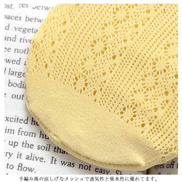 | 接触冷感でひんやり涼しいメッシュソックス。 普段使いしやすいクルー丈のレディースソックス。 メッシュ編みで通気性もよく、暑い季節も足元快適。 シンプルなデザインなので、スポーツサンダルやキレイめなシューズにもピッタリです。 | |