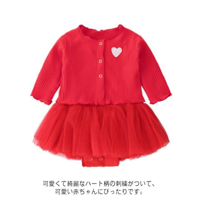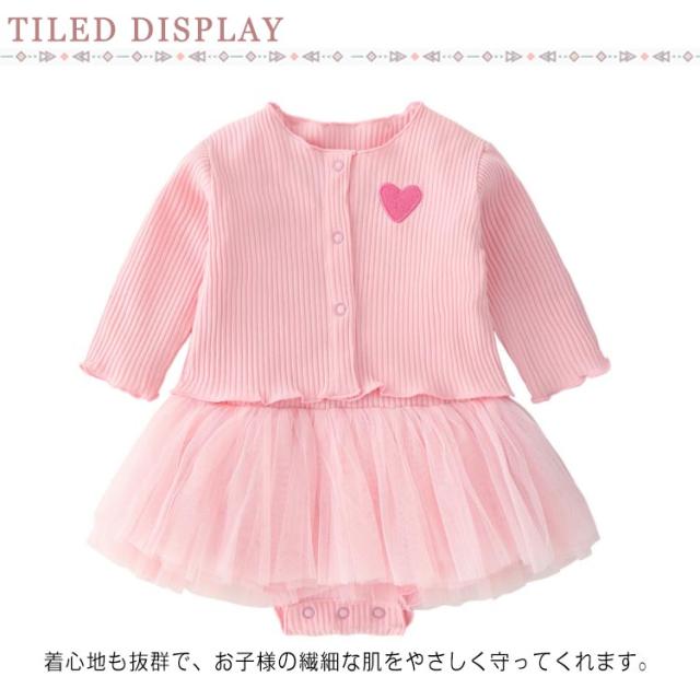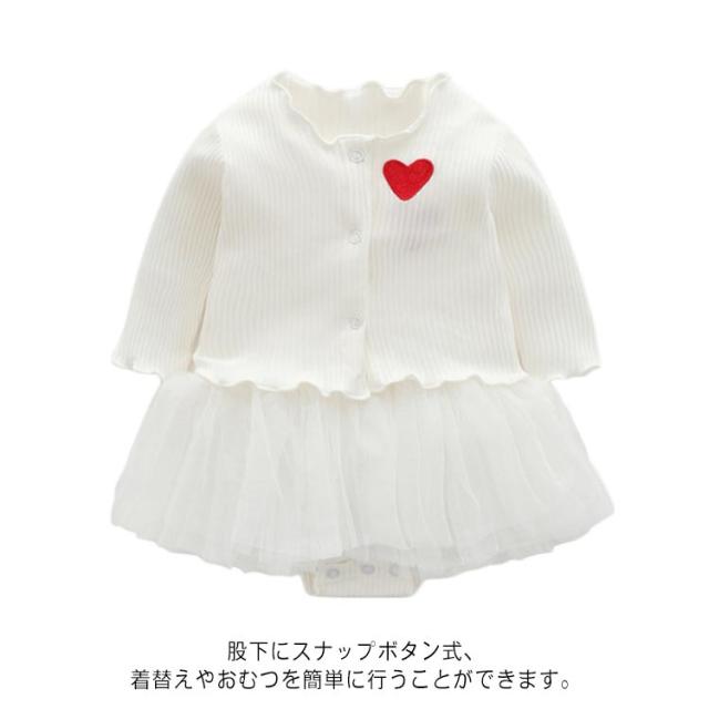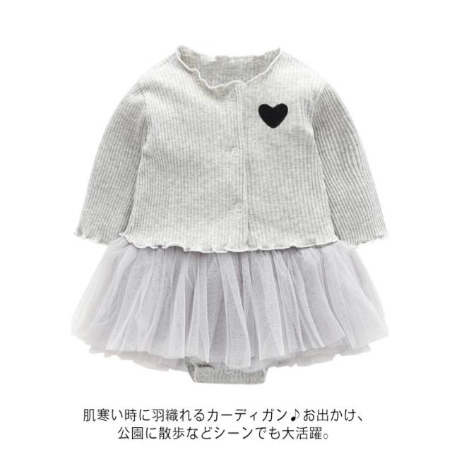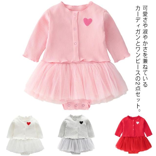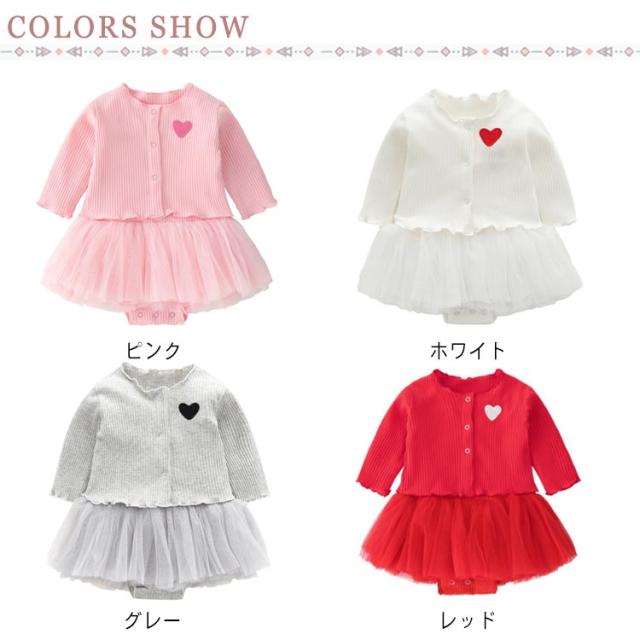 ベビー服 ワンピース チュールスカート ロンパース 2点セット カーディガン ボレロ 結婚式 赤ちゃん 新生児 女の子 春秋 可愛い ハート柄 出産祝い 送料無料