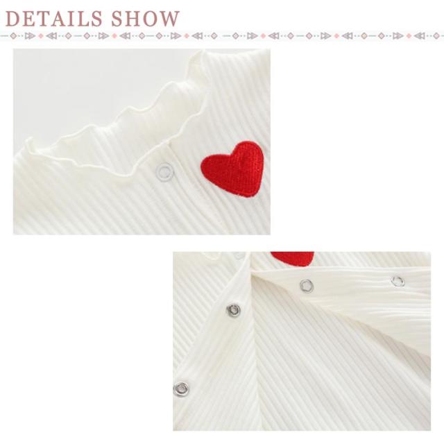 | 可愛さや淑やかさを兼ねているカーディガンとワンピースの2点セット。 着心地も抜群で、お子様の繊細な肌をやさしく守ってくれます。 股下にスナップボタン式、着替えやおむつを簡単に行うことができます。 肌寒い時に羽織れるカーディガン♪お出かけ、公園に散歩などシーンでも大活躍。 可愛くて綺麗なハート柄の刺繍がついて、可愛い赤ちゃんにぴったりです。 | |