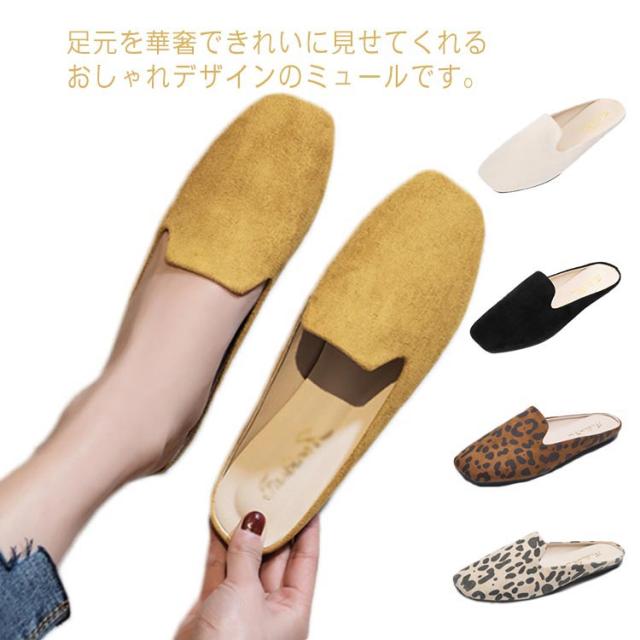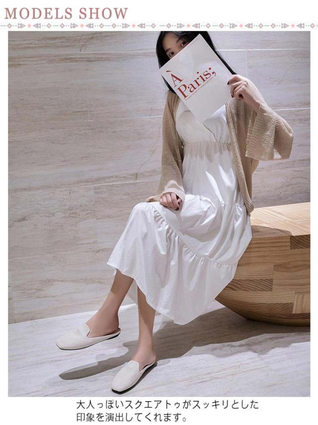 ミュール スリッポン スクエアトゥ サンダル 楽ちん 歩きやすい シューズ ぺたんこ レディース 痛くない ローヒール お洒落 普段用 春夏 スリトート