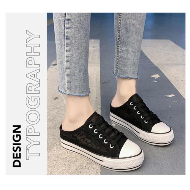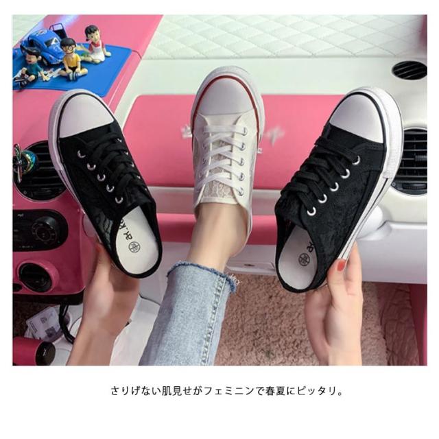 夏スニーカー レーススニーカー 白 厚底 スリッポン サンダル レディース 靴 インヒール 透け感 小さいサイズ 大きいサイズ かかとなし