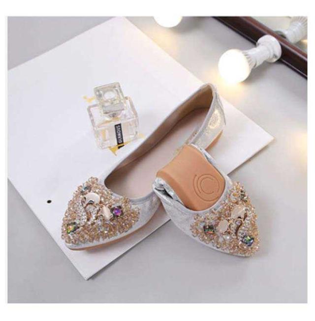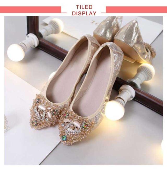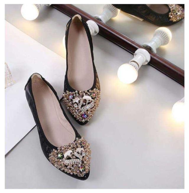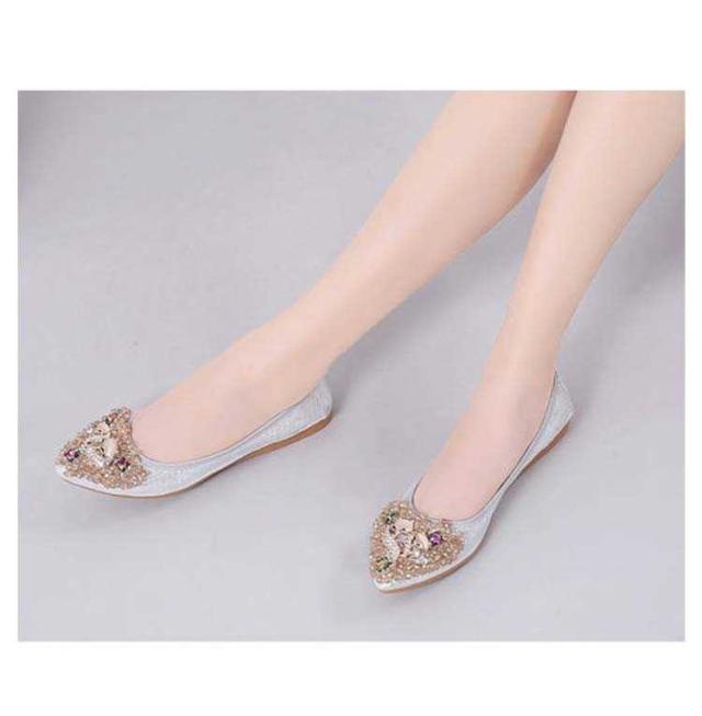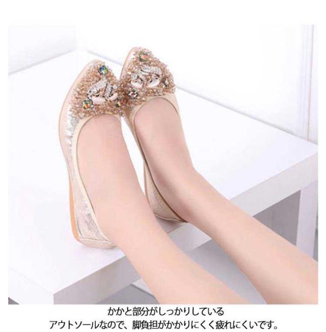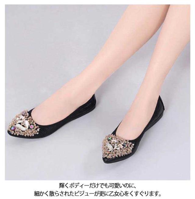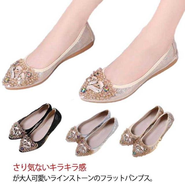 | さり気ないキラキラ感が大人可愛いラインストーンのフラットパンプス。 輝くボディーだけでも可愛いのに、細かく散らされたビジューが更に乙女心をくすぐります。 アッパーには柔らかい素材を使用しており、長時間履いても足が痛くなりにくい。 かかと部分がしっかりしているアウトソールなので、脚負担がかかりにくく疲れにくいです。 どんなスタイリングも今ドキっぽくみせてくれるおすすめのアイテム! | |
