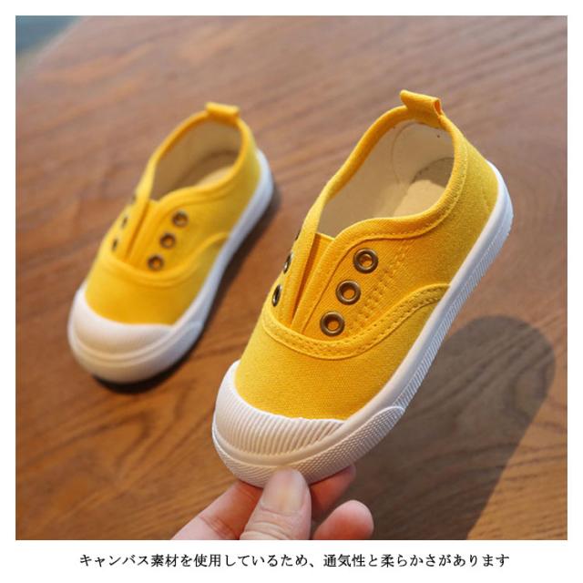 スリッポン 上履き キッズ 無地 キャンバスシューズ スニーカー 紐なし ベビー 子供靴 おしゃれ 女の子 男の子 小学生 ジュニア こども 軽量 小学校 かわいい ゴムバンド 通気性 幼稚園 シンプル 送料無料