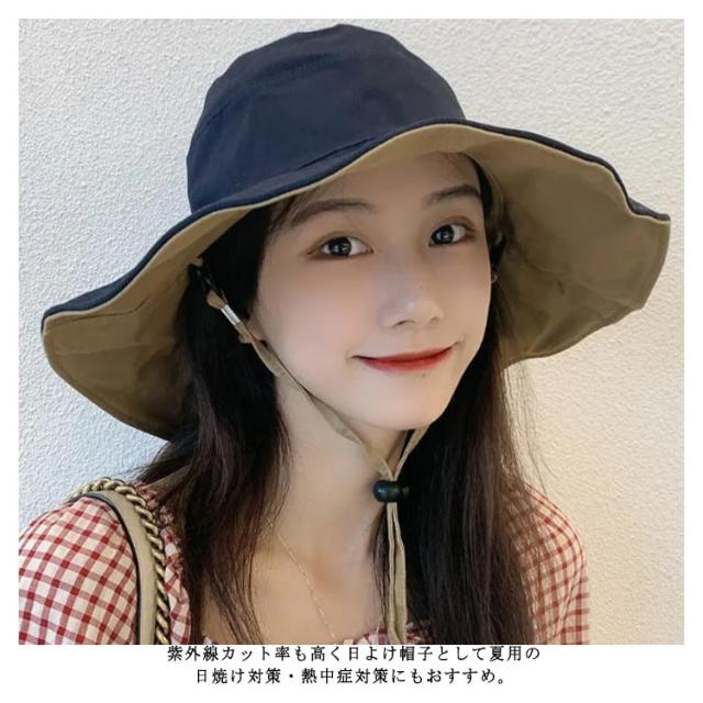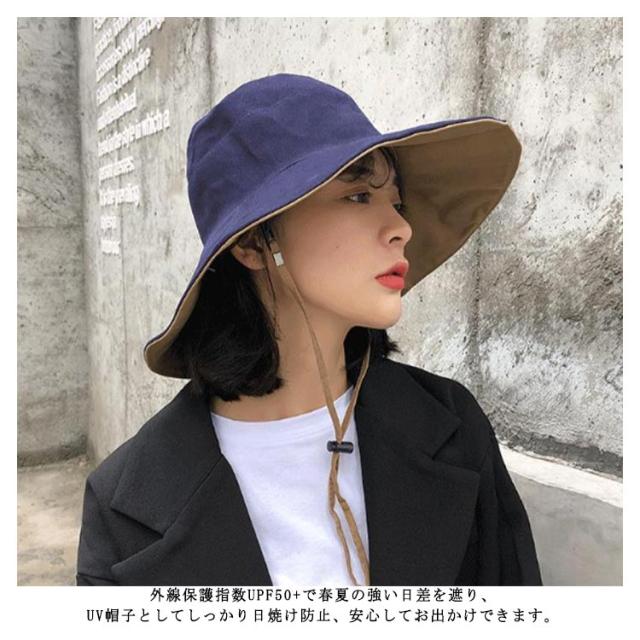 【送料無料】帽子 ハット レディース UV 100% カット つば広 折りたたみ 春 夏 綿 おしゃれ 可愛い サファリハット 紫外線 日よけ UVケア UVハット あご紐つき 小顔効果 飛ばない 自転車 花見 運動会 旅 ネイビー 紺