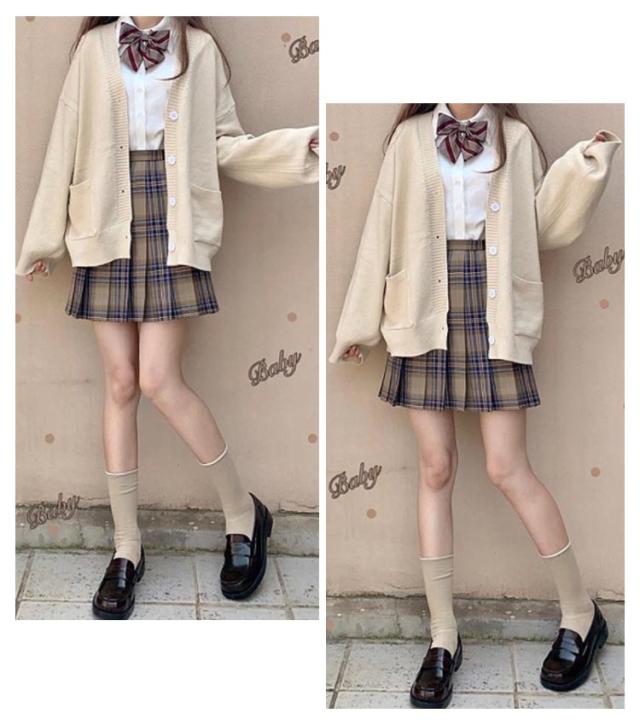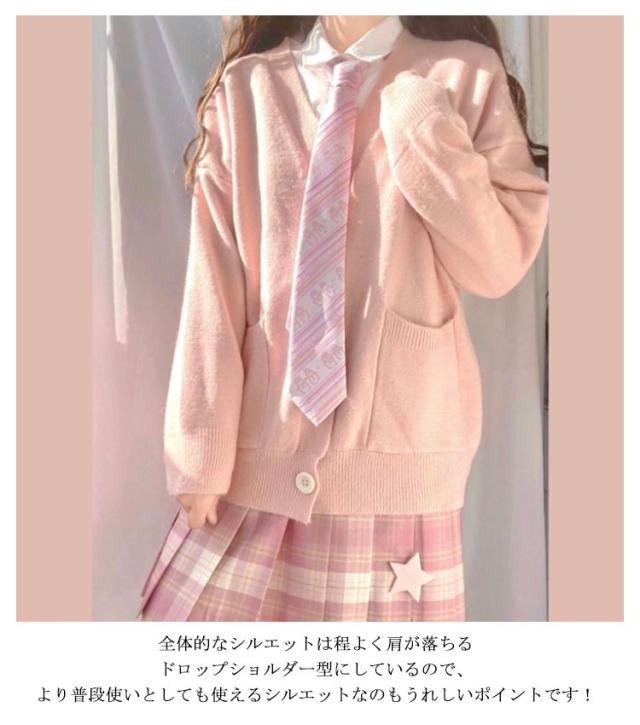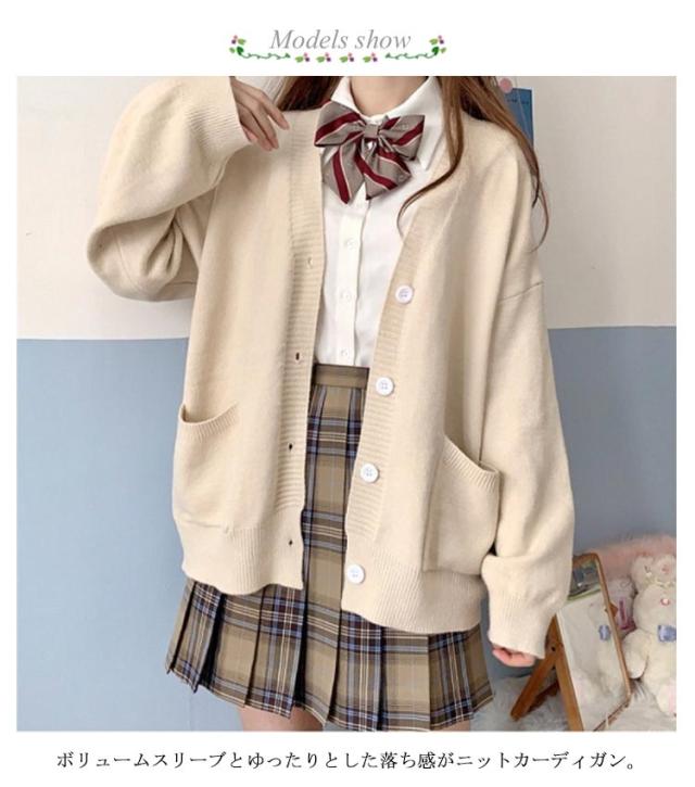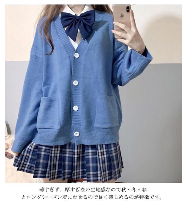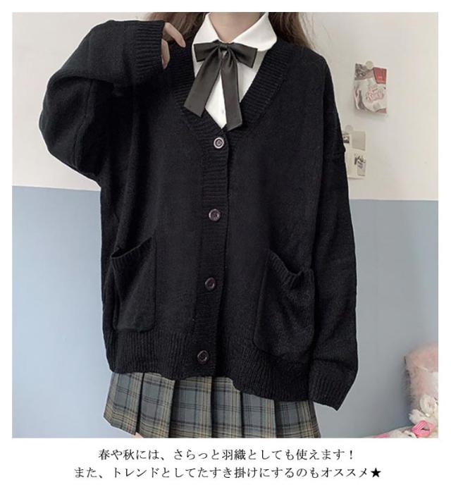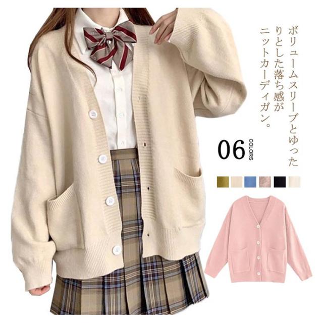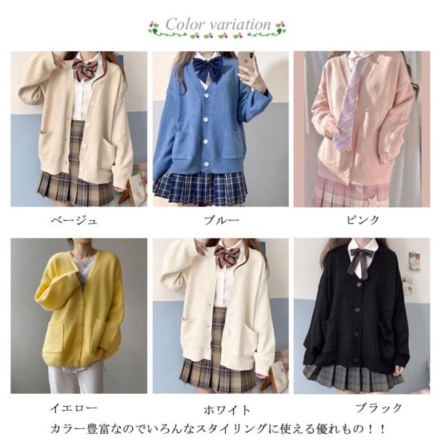 全6色!学生服 スクールカーディガン ニットカーディガン 女子 制服 ゆったり Vネック 前開き 秋冬 春 羽織り スクールセーター 高校生 中学生ドロップスリーブ 無地 シンプル かわいい ホワイト イエロー ブラック ピンク ブルー ベージュ 大きいサイズ 送料無料