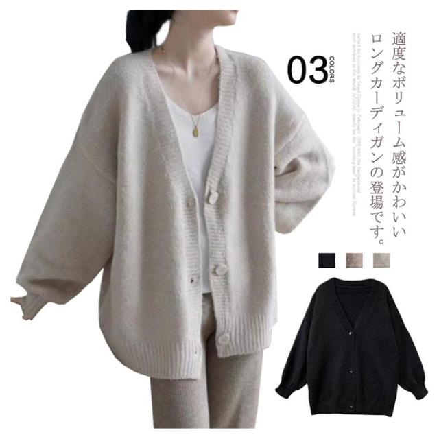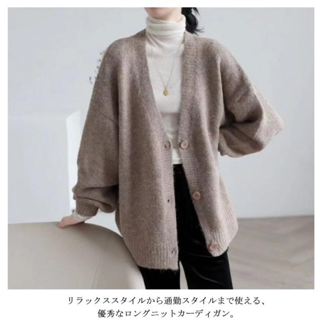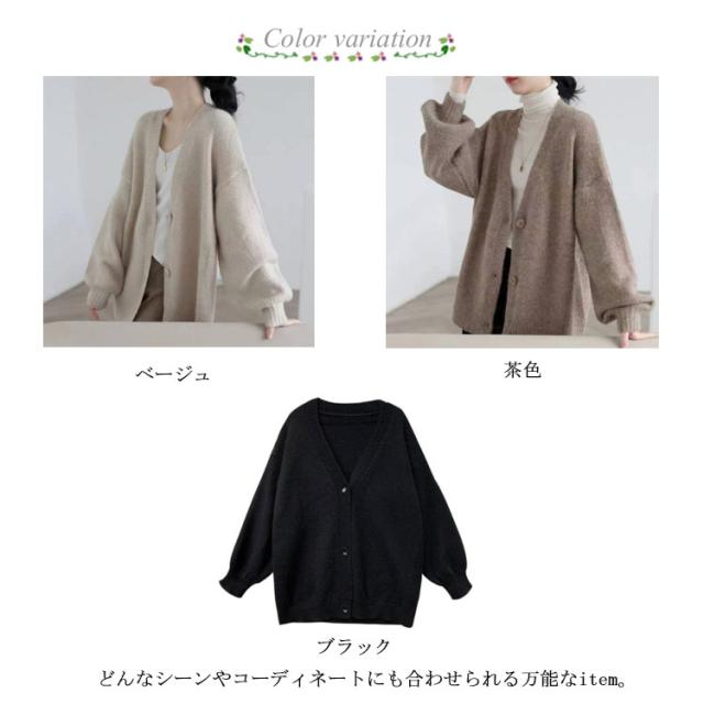 カーディガン レディース ニットカーディガン 羽織り ゆったり 体型カバー 長袖 ドロップショルダー オフィス コーディガン 春 秋冬 トップス 大きサイズ M L 2L 3L 4L 無地 Vネック 前開き ベージュ 茶色 ブラック 黒 送料無料