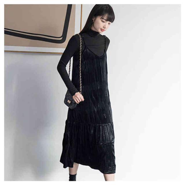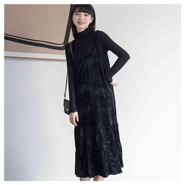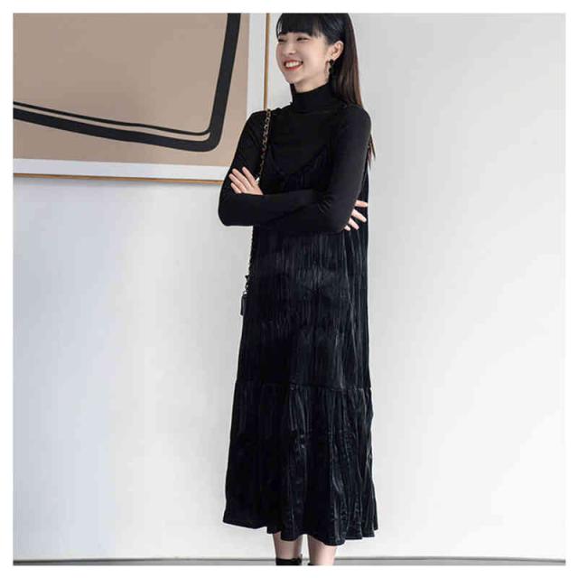ベルベット ワンピース インナー ワンピース ロングワンピース ノースリーブワンピース レディース 重ね着 結婚式 パーティードレス オフィス カジュアル シワ しわ 上品 大人 春 通勤 入園式 卒業式