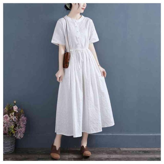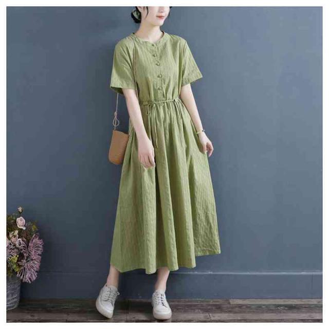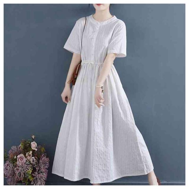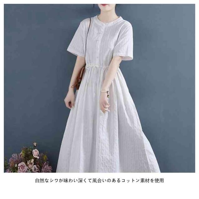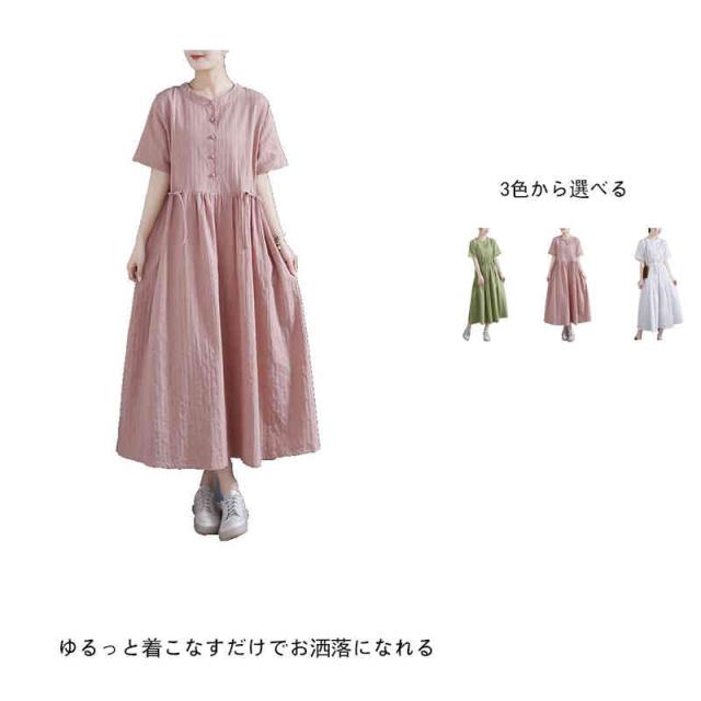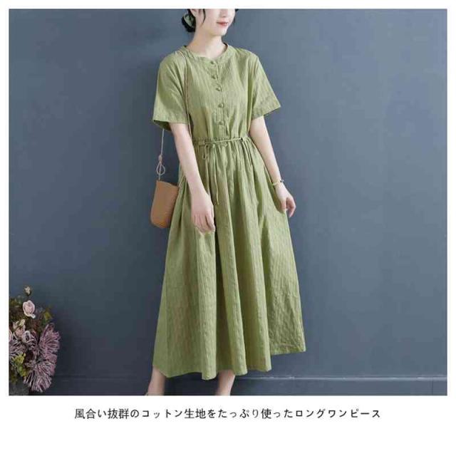 ワンピース ロングワンピース レディース シャツワンピース 麻 リネン シンプル おしゃれ ゆったり 天然素材 大人かわいい ナチュラル ナチュラン 体型カバー バンドカラー スタンドカラー Aライン フレア