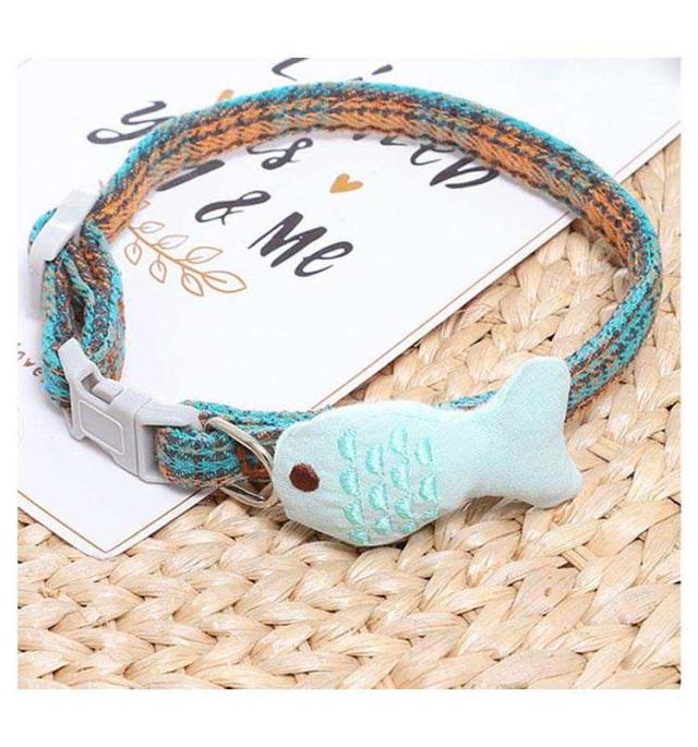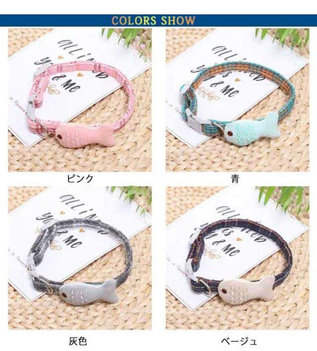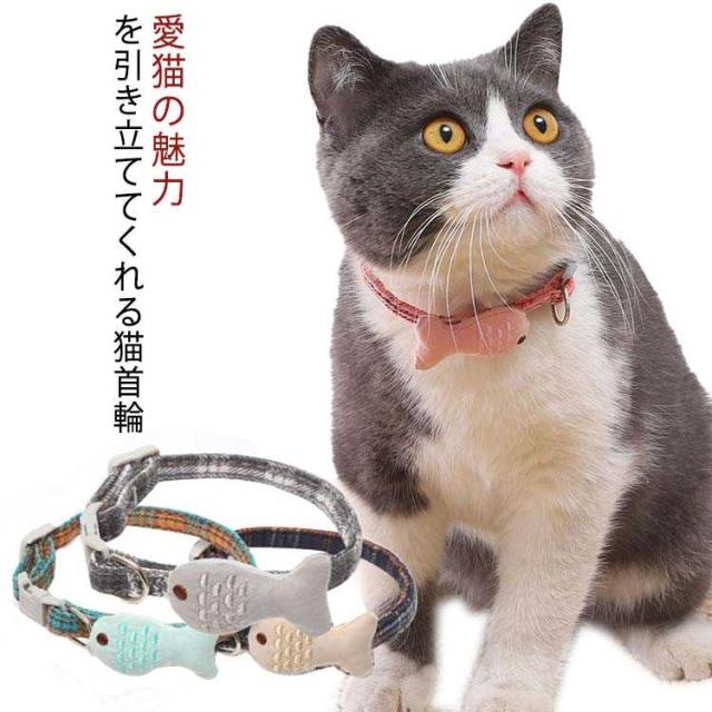 首輪 セーフティバックル 魚 猫用首輪 可愛い ネコグッズ 安全バックル おしゃれ 超小型犬 安全 猫 ネコ ネクタイ ねこ シンプル リード穴付き サイズ調整 軽量 猫型バックル キャット かわいい 猫グッズ ペット用品 【送料無料】