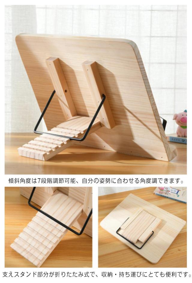 滑り止め 書見台 ブックスタンド 多用途 卓上 木製 学生用 本立て 携帯便利 勉強用 楽譜 読書台 ノートパソコン タブレット 7段階調整