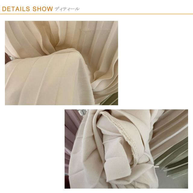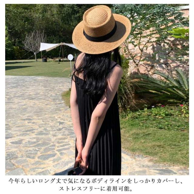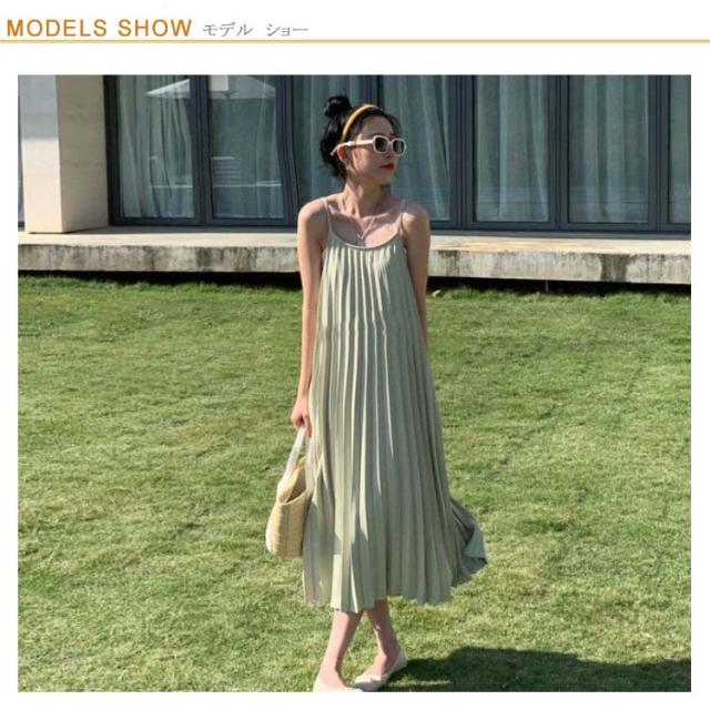 | 軽いポリエステル素材なので春から秋まで幅広い季節で着用可能です。肌に密着するということがなく、サラッとした着心地です。 調節可能な肩の細ストラップが女性らしく甘すぎないデザインとなっております。 全身のプリーツを施し、歩くたびにひらりと揺れて女性らしさを引きたてます。 体型カバーしつつIラインシルエットで細見え効果も◎ 今年らしいロング丈で気になるボディラインをしっかりカバーし、ストレスフリーに着用可能。 | |