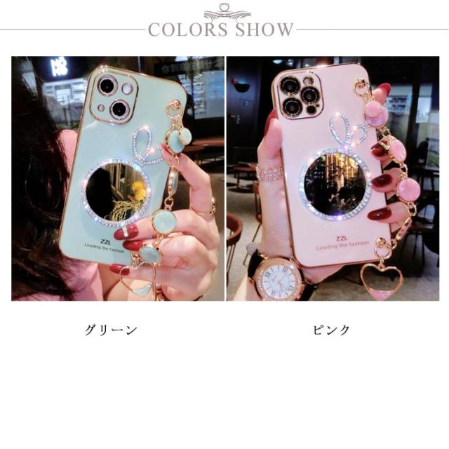 iPhone se ケース iPhone13 pro キラキラ 鏡付き ミラー付き 韓国 iPhone カバー iPhone13Pro iPhone13Promax スマホケース おしゃれ かわいい アイフォン ベルト ラインストーン