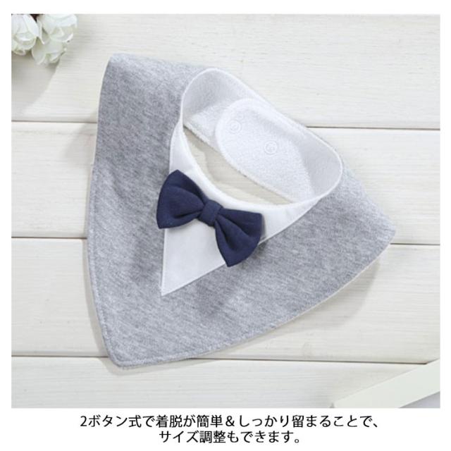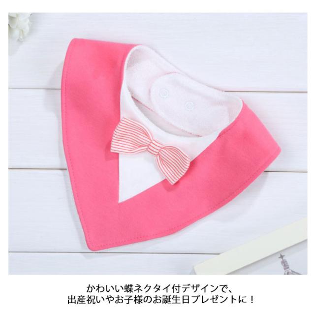 | リボンの付いたおしゃれなベビー用のスタイ(よだれ掛け)です。 やわらかく、吸水性・速乾性が高いコットン地で、デリケートな肌の乳児でも安心してお使いいただけます。 2ボタン式で着脱が簡単&しっかり留まることで、サイズ調整もできます。 かわいい蝶ネクタイ付デザインで、出産祝いやお子様のお誕生日プレゼントに! 汚れたらくるっと回せば1回で長く使えます! 双子やきょうだいおそろいもおすすめです。 | |