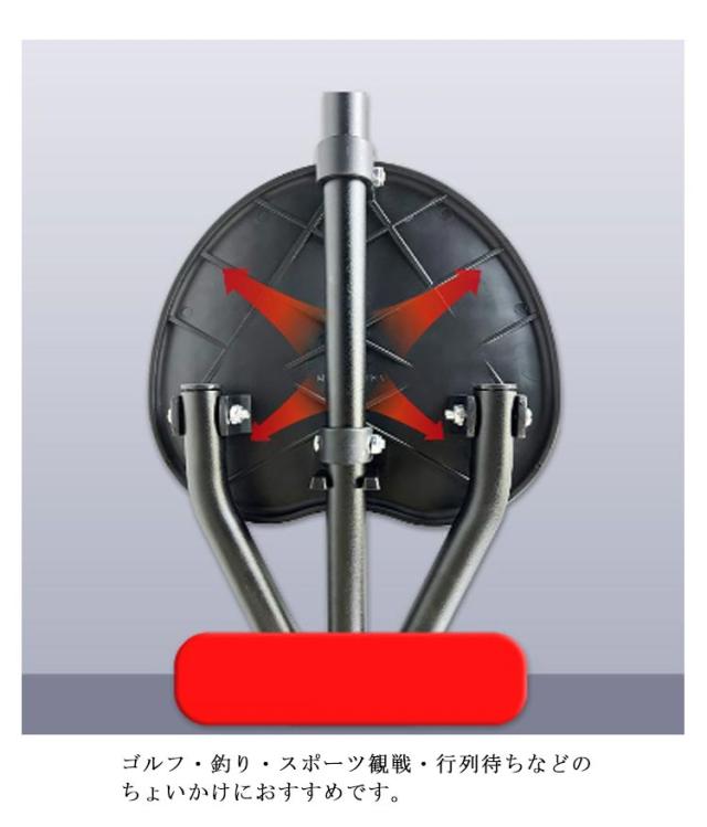 | 座れる!便利なステッキチェア。 ニーズに合わせて5段階調節可能! アルミステッキ本体は強くて軽く、安定して座れる、耐荷重性も抜群! しっかりと握りやすい持ち手付きます。 杖をついて歩いて、疲れたら椅子に早変わり! 座面を開くだけで簡単に椅子にする事ができます。 LEDライト付き、視界が悪い夜道にも便利。 ステッキチェアは軽量で杖にも、折畳み式の三脚の椅子にもなるので便利です。 ゴルフ・釣り・スポーツ観戦・行列待ちなどのちょいかけにおすすめです。 | |