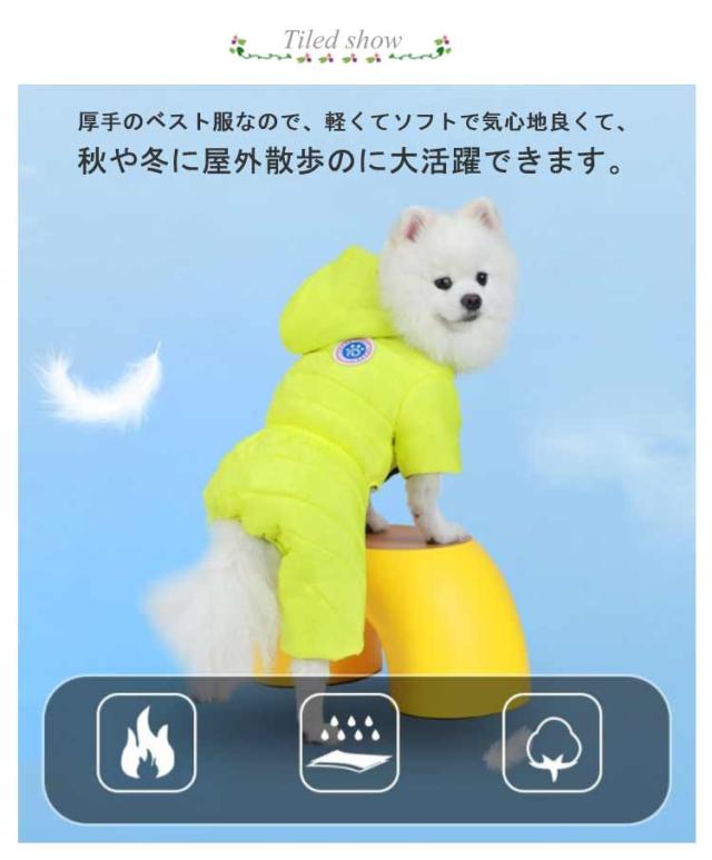 | 厚手のベスト服なので、軽くてソフトで気心地良くて、秋や冬に屋外散歩のに大活躍できます。 毎日一緒に生活する愛犬が自宅でも散歩中でも、外出先でもこんなオシャレな服を着せると、注目を浴びるアイテムに間違いなし。 背中にはリードを通すためのリングを装備しています。スナップボタン式なので履き脱ぎがスムースで楽チン。 犬のジャケットは反射ストリップがあります。夜に出かけると犬の位置がわかりやすくなり、安全を保障します。 | |