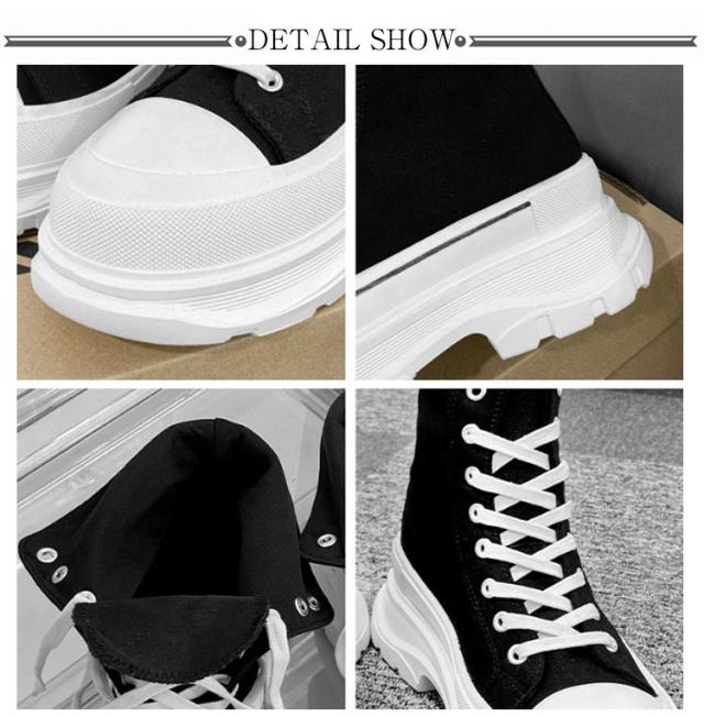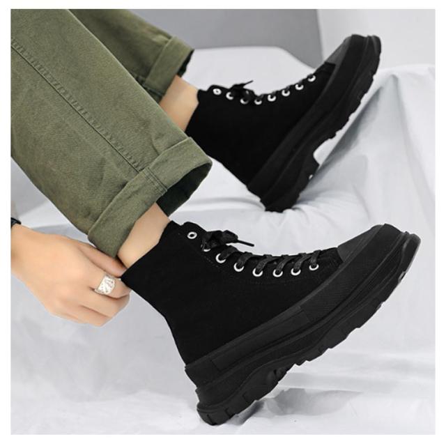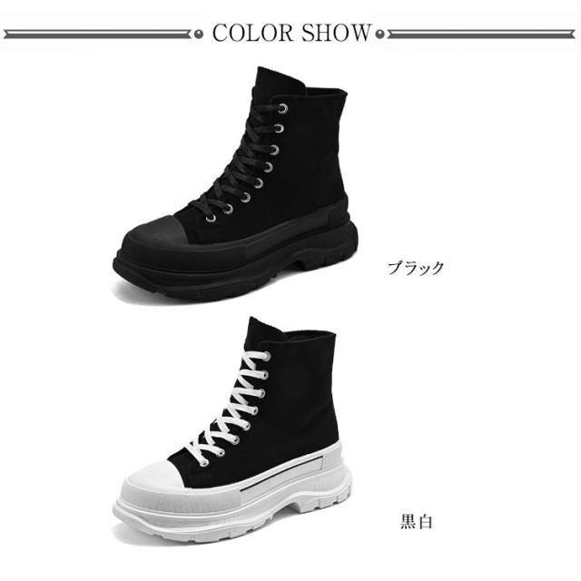 メンズ ハイカットスニーカー 厚底 スニーカー レースアップ キャンバス ホワイト ブラック 歩きやすい 黒 白 ダッドスニーカー 痛くない 疲れない スニーカー