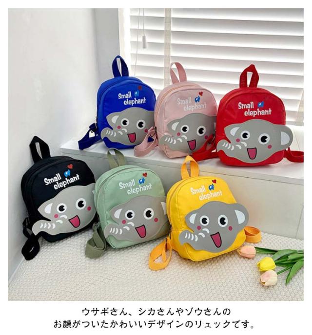 | 【商品名】キッズリュック 【サイズ】20*22*8cm 【素材】ナイロン生地 【特徴】 小さな子供向けのミニサイズリュックサック。 ウサギさん、シカさんやゾウさんのお顔がついたかわいいデザインのリュックです。 お出かけやお散歩にもぴったり! ちょっと引っ掛けるのに便利な持ち手付き。 ショルダーベルトは長さ調節可能です。 メイン収納部分が大きく開くので荷物の出し入れが楽々。 | |