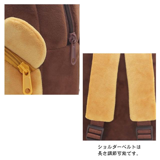 | 【商品名】ミニリュック 【サイズ】サイズ表 【素材】ポリエステル、その他 【特徴】 ぬいぐるみのような可愛いリュック★ お子さんが持ちやすいサイズ感♪小さな子供向けのミニリュック。 もこもこ素材で背負うだけでかわいい。 大きな前ポケット付きで機能性もバッチリ! メイン収納部分が大きく開くので荷物の出し入れが楽々。 ショルダーベルトはやわらかいのでお子様が背負いやすい。 ショルダーベルトは長さ調節可能です。 お出かけやお散歩にもぴったり!保育園や幼稚園の登園バッグとしても◎ 色違いで兄弟、姉妹やお友達とお揃いで持っても可愛いです★ | |