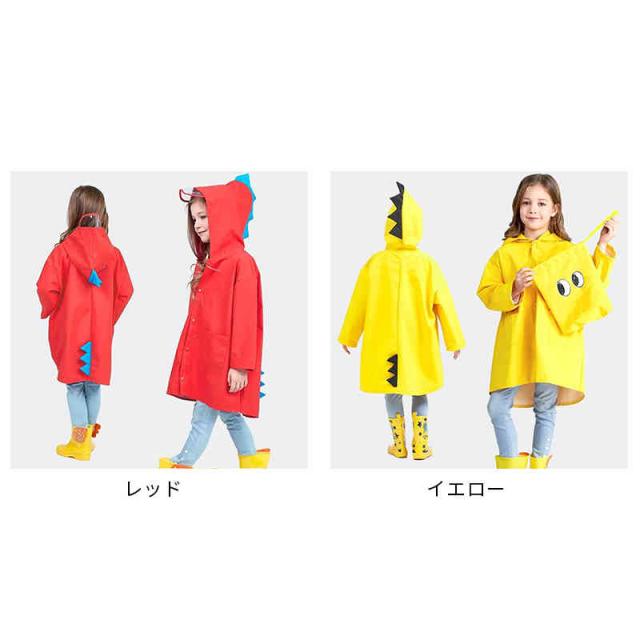 | 雨の日のお出かけや通学に目立つ事間違いなしの、恐竜のレインコートです。 可愛いのキッズ向けレインポンチョです。 高機能な優れた浸透防水素材を使用し、長時間の使用でも雨を通さず、風雨や紫外線を浴び続けても劣化しにくく長持ちします! 専用のポーチには手書き風の目がイラストされており、お子さんもご機嫌になること間違いなし! フードが透明なので、フードをかぶっていてもまわりが良く見えて、雨水が顔にかかりにくくて安心♪ | |