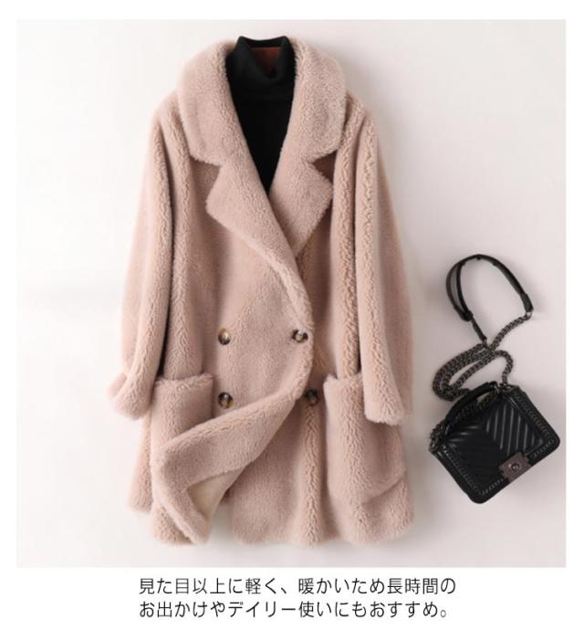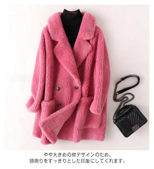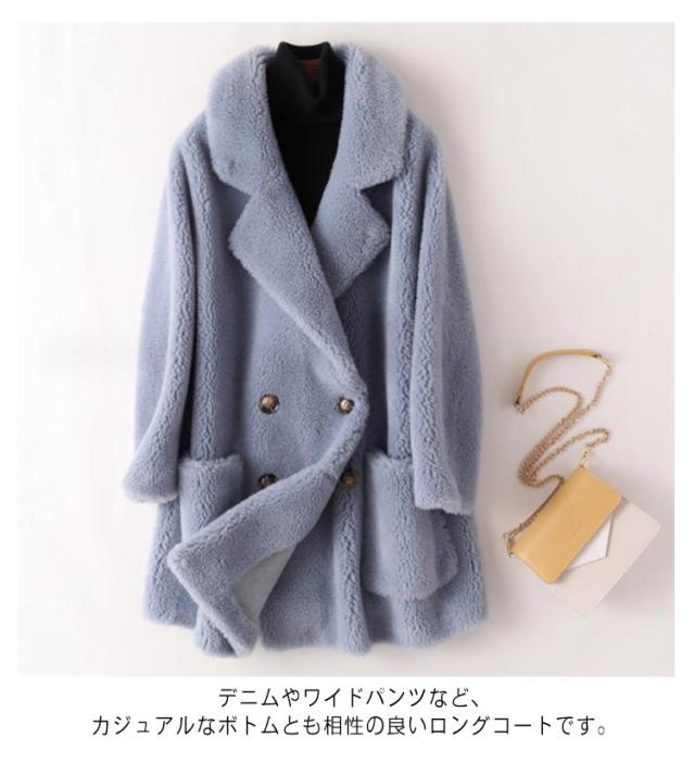 ボアコート テディベアコート レディース アウター 防寒 ロングコート ダブルボタン チェスターコート 襟 もこもこ 高見え ボアジャケット ロング 長い コクーン ドロップショルダー ゆったり もこもこ ムートンコート ピンク ホワイト ローズ ベージュ ブルー