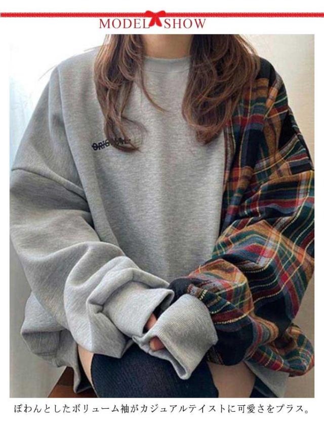 | チェック柄と切り替えのスウェットトップス! ぽわんとしたボリューム袖がカジュアルテイストに可愛さをプラス。手首のところがキュッとしてるのでちゃんと手は出ます。 ゆるりとしたシルエットが力の抜けたこなれ感を演出! 楽チンカジュアルなスウェット素材で普段使いしやすい。 裏起毛付き&裏起毛無しタイプ!お手入れもしやすい為、秋から春にかけて大活躍するアイテム間違いなし。 | |