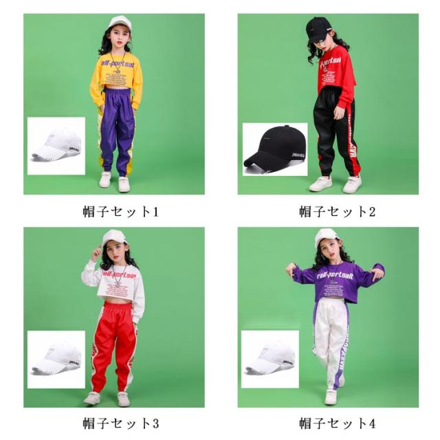 キッズ ダンス衣装 ヒップホップ 3点セット ジャズダンス ステージ衣装 ダンスウェア セットアップ へそ出し カーゴパンツ HIPHOP 子供服 男の子 女の子 長袖 練習着 演出服 ダンスウェア 韓国風 応援団 演出服 ヘアバンド/帽子付き