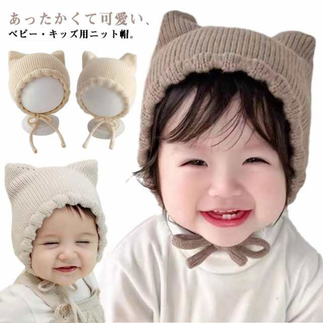 ベビー 帽子 ニット帽 猫耳 ニットキャップ 秋冬 キッズ 赤ちゃん帽子 耳付き 防寒 かわいい ねこ耳 女の子 男の子 プレゼント 写真撮影 SNS 韓国