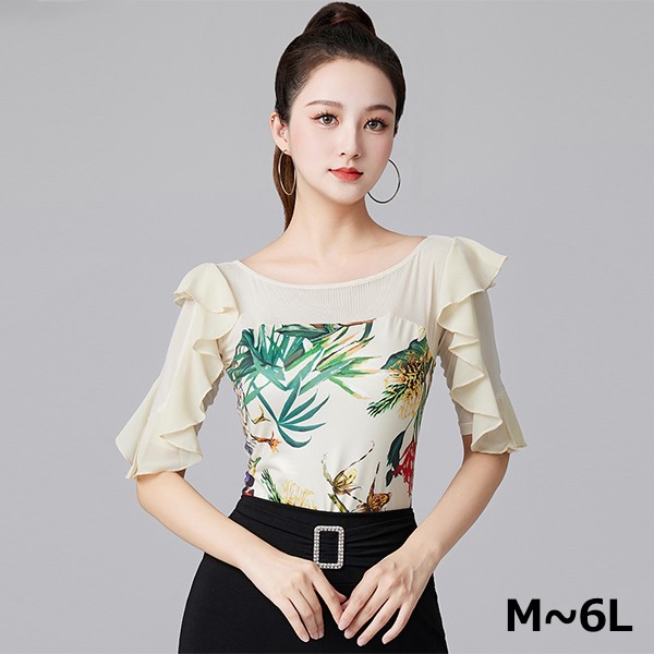 社交ダンス トップス 社交ダンス衣装 上着 大きいサイズ 花柄 フリル ダンス用シャツ ダンスTシャツ 透け感 社交ダンス ラテンダンス ダンスウェア 練習着 長袖 カラオケ衣装 大きいサイズ レッスンウェアS M L 2L 3L 4L 5L 6L dm120l9