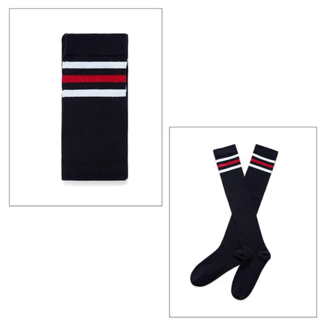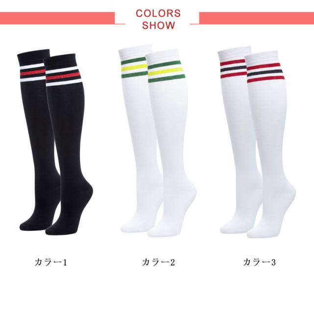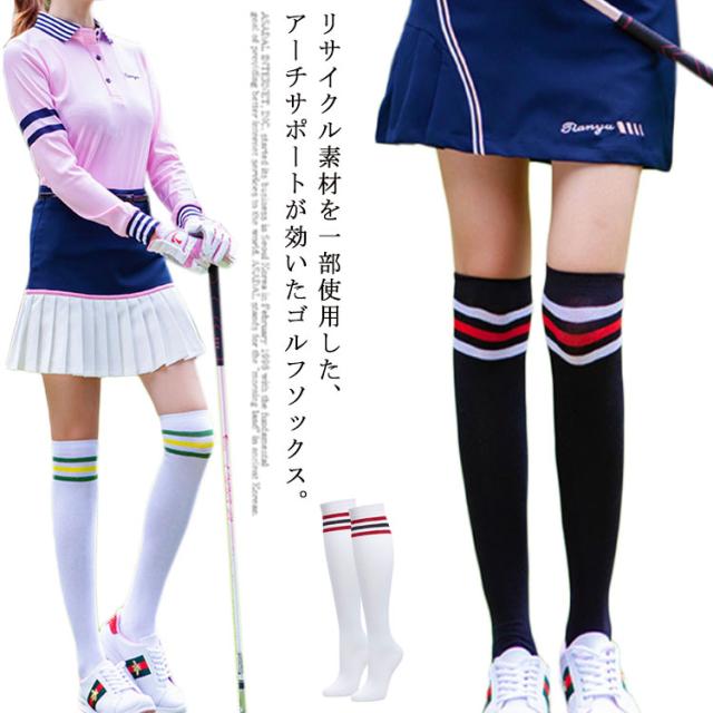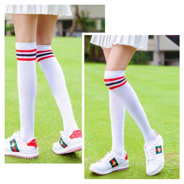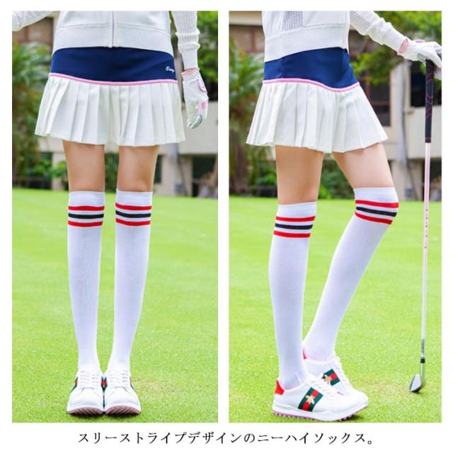 送料無料 ゴルフ 靴下 レディース ライン入ニーハイソックス 黒 白 ブラック ニーハイ ゴルフウェア かわいい 膝上