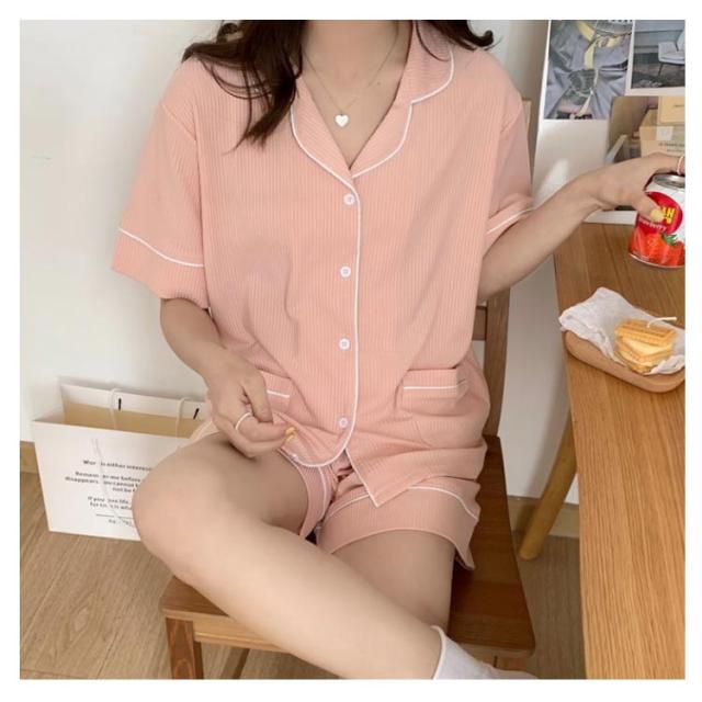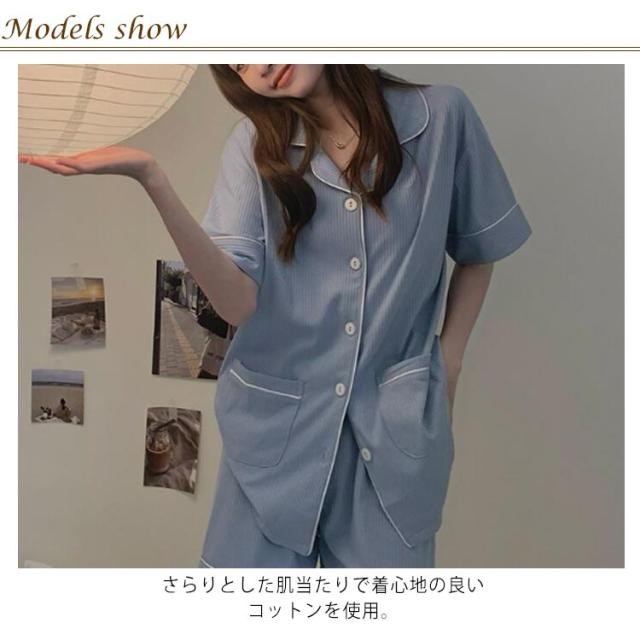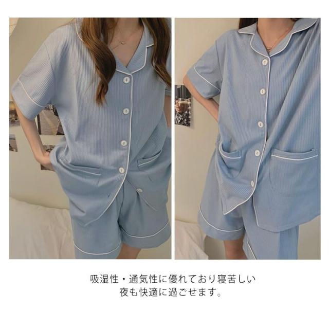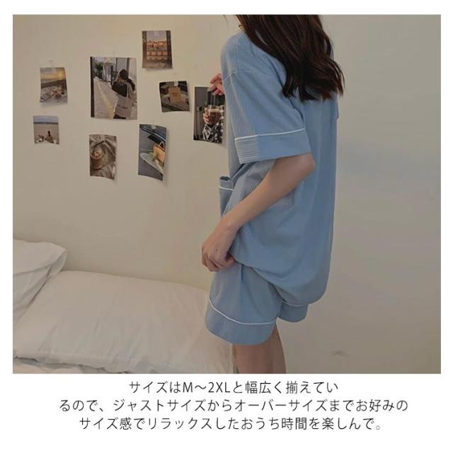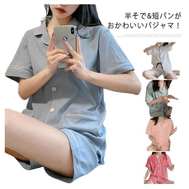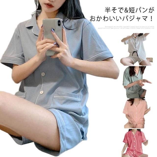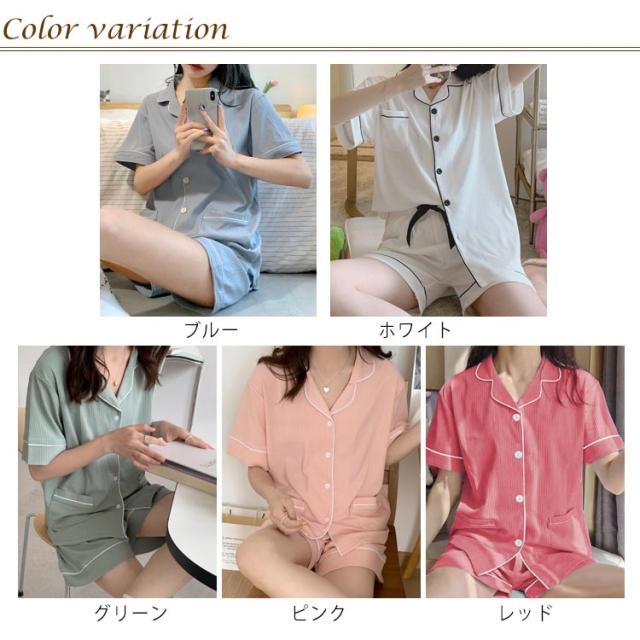 部屋着 半袖 レディース パジャマ 夏 上下セット 送料無料 かわいい ルームウェア 綿 無地 大人 大きいサイズ ショートパンツ ゆったり 薄手 前開き ナイトウェア リラックス 母の日 誕生日 プレゼント