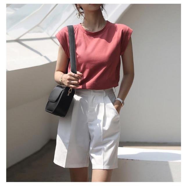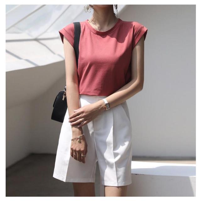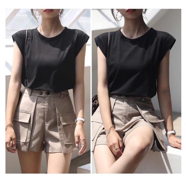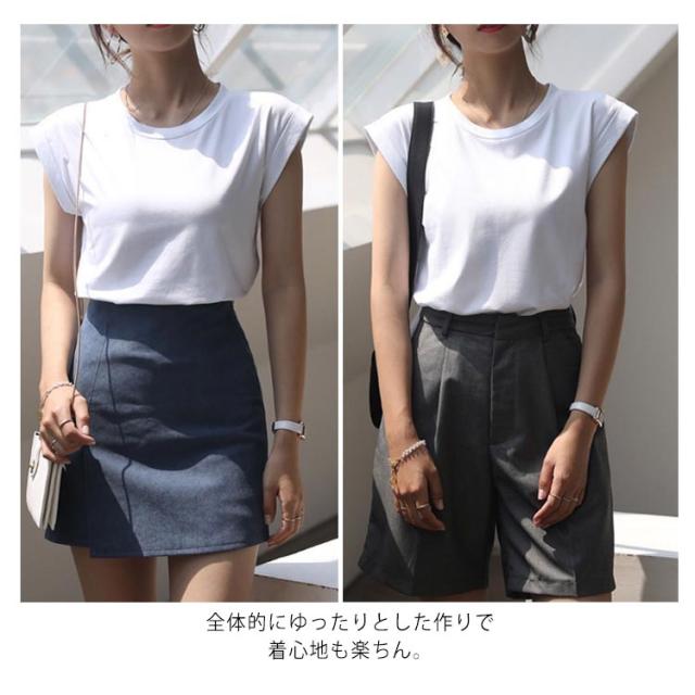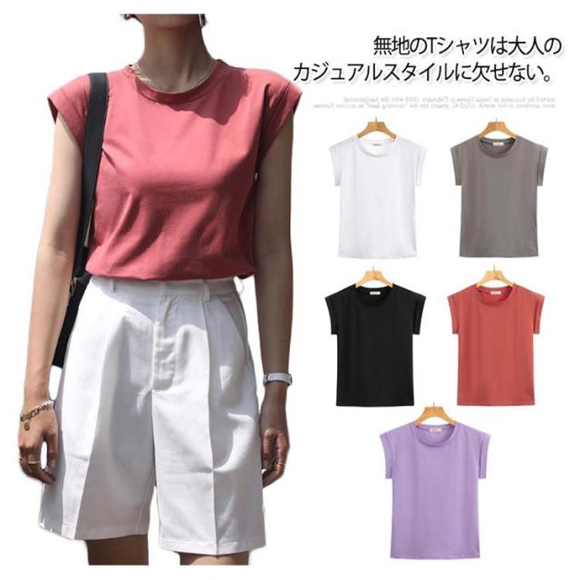 クルーネック Tシャツ レディース 半袖 カットソー 送料無料 フレンチスリーブ 春 夏 フレンチスリーブtシャツ 韓国 無地T 体型カバー カジュアル 二の腕カバー ノースリーブ シンプル