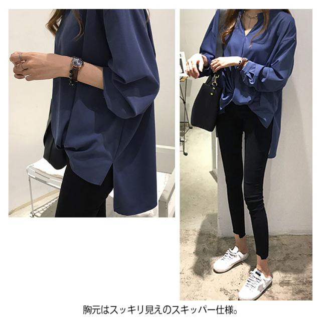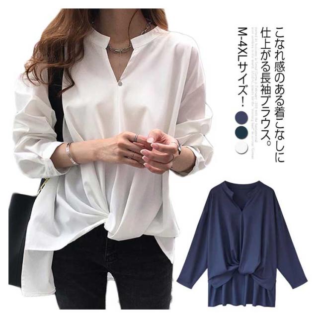 《送料無料》前後の丈感に差をつける。フロントギャザー トップス レディース プルオーバー シャツ ブラウス スキッパー スキッパーシャツ チュニック シンプル 無地 大きサイズ 春 夏