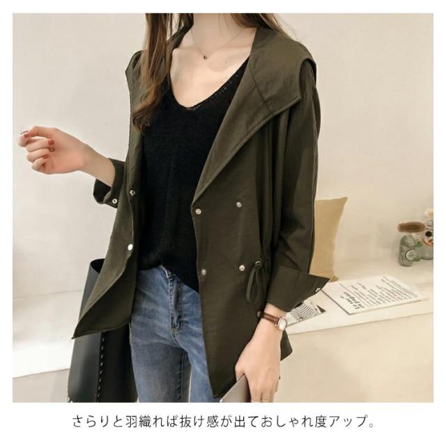 ラフに軽く着こなせる!トレンチコート マウンテンパーカー スプリングコート レディース 春 薄手 ショート丈 アシンメトリー フード付き 大きいサイズ