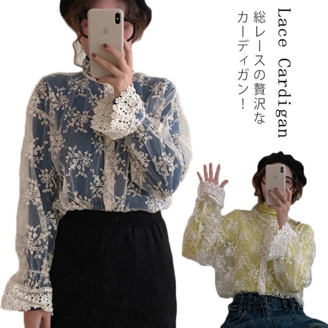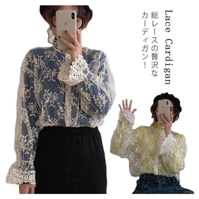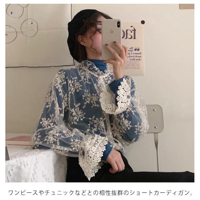 シースルー カーディガン レース ブラウス 長袖 ブラウス 総レース カーディガン ショート丈 レース カーディガン レディース 結婚式 お呼ばれ パーティー レイヤード 羽織り 春夏