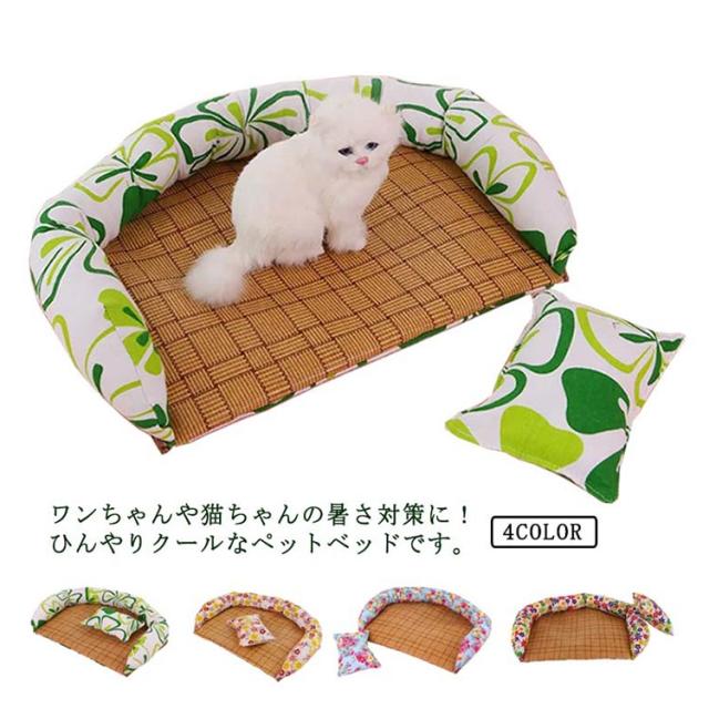 ペットベット 夏用 犬猫用 ペットクッション クールマット 枕付き 小中型 熱中症対策 ペット用品 ペットマット 寝床 ひんやり 暑さ対策 通気性 洗える 大きいサイズ