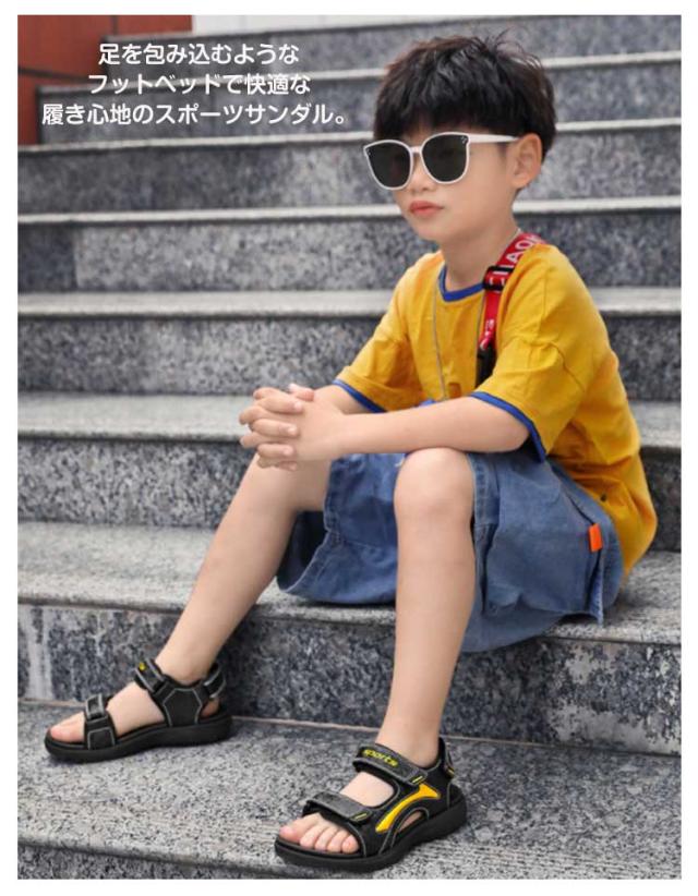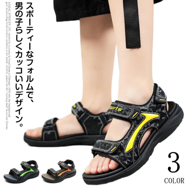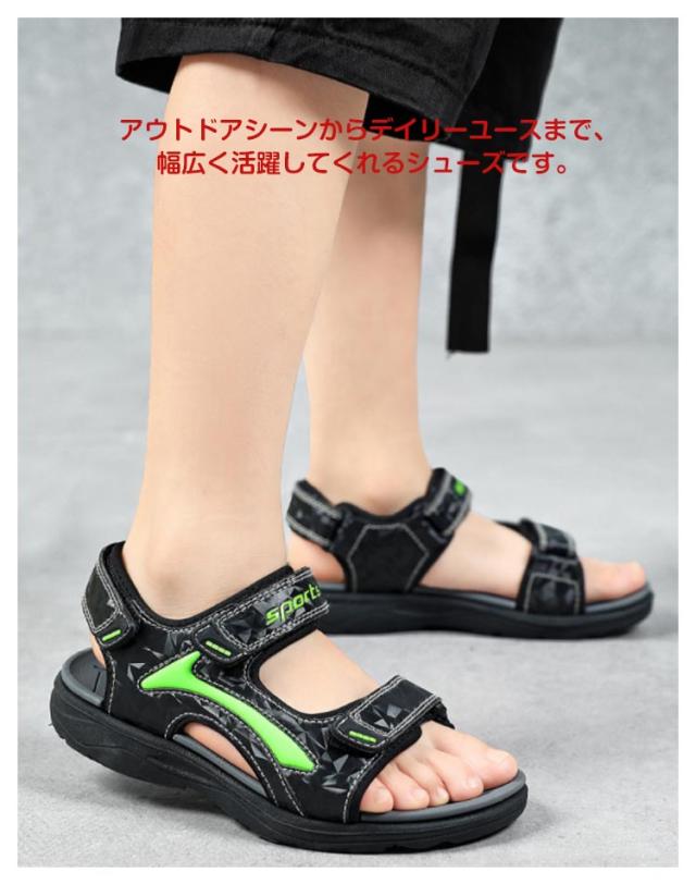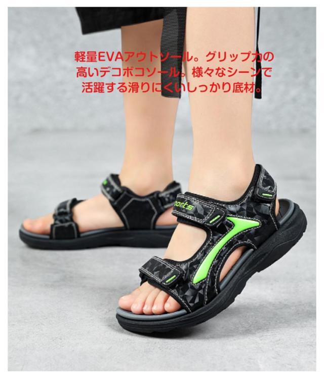 子供用 サンダル スポーツサンダル キッズ ジュニア 男の子 マジックテープ 滑りにくい EVAソール アウトドア 軽量 通気 通園 通学 お出かけ 全3色 夏