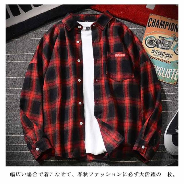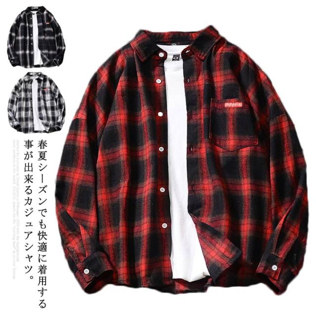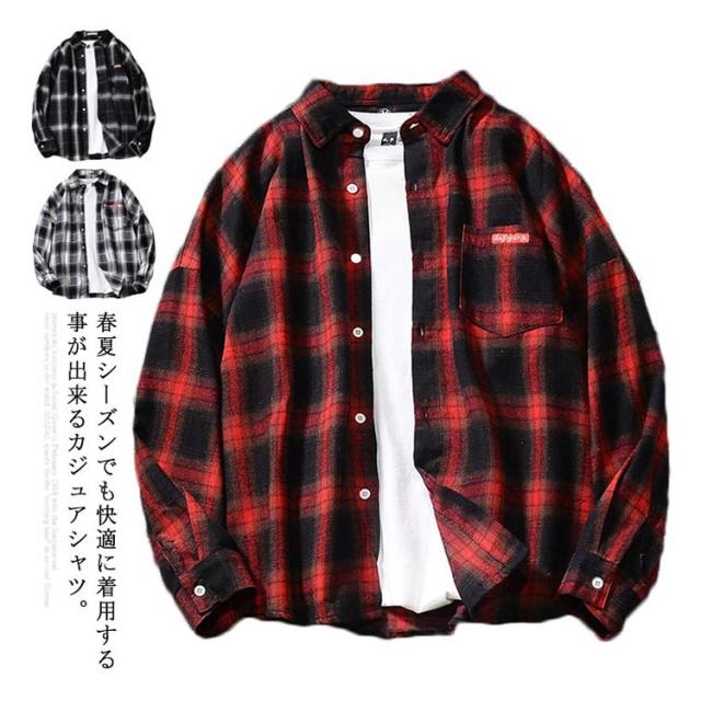 シャツ メンズ 長袖 チェック柄 トップス ゆったり プルオーバー 男性 カジュアルシャツ お洒落 レトロ 大きいサイズ 春秋物