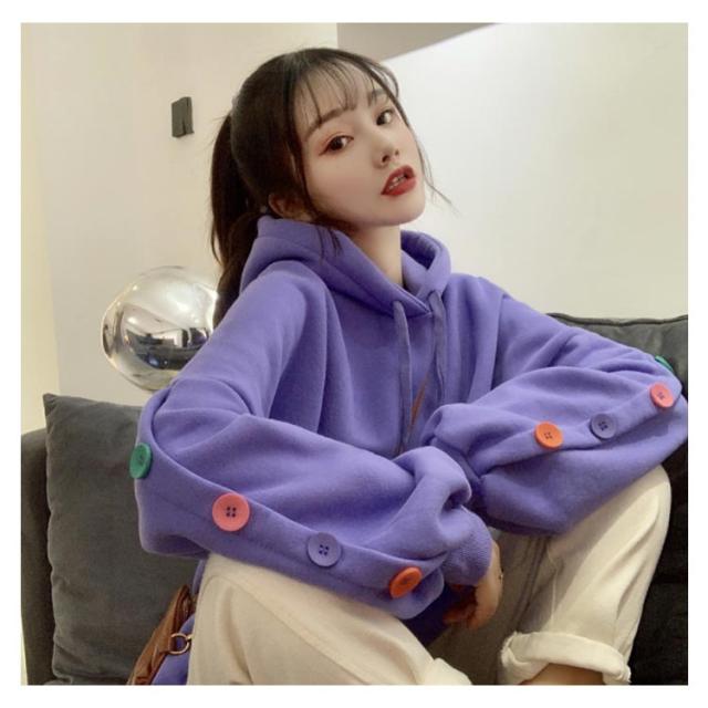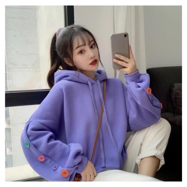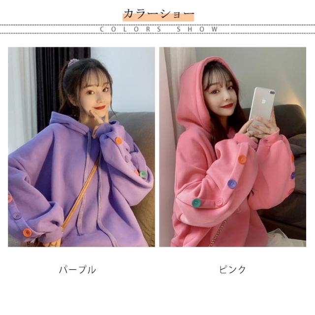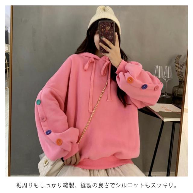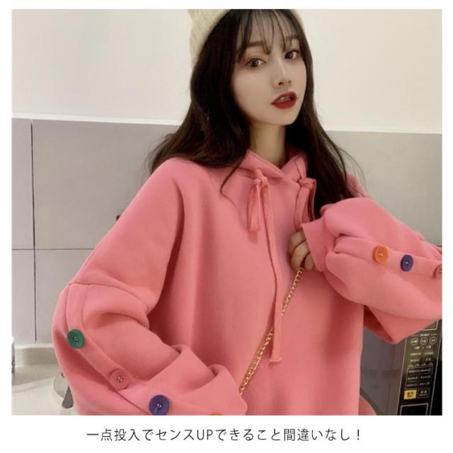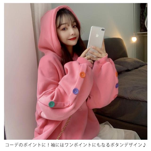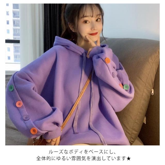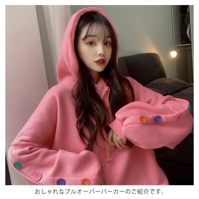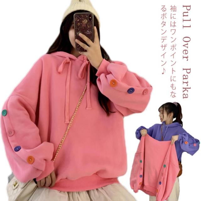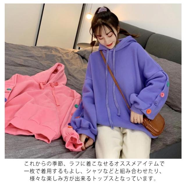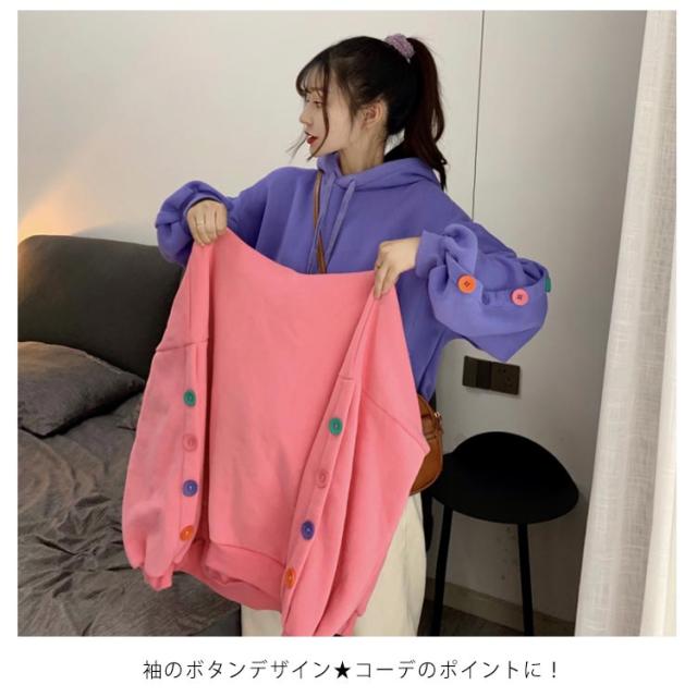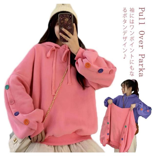 ボタンデザイン 長袖 パーカー オーバーサイズ プルオーバーパーカ プルオーバー パーカー レディース スウェット トレーナー スウェット パーカー ジャージ 部屋着 ダンスウェア ゆったり