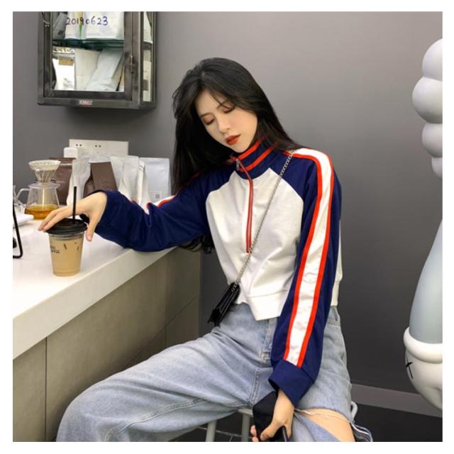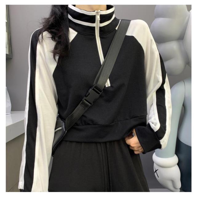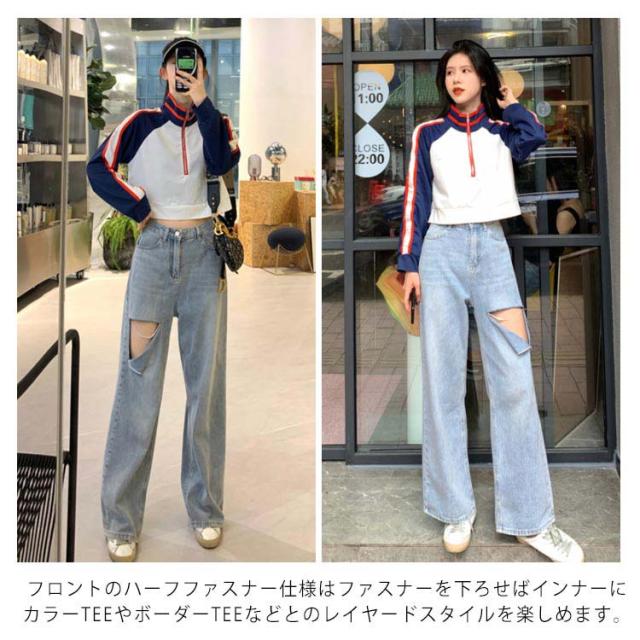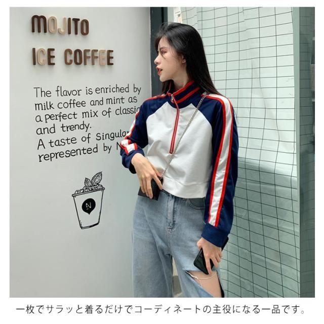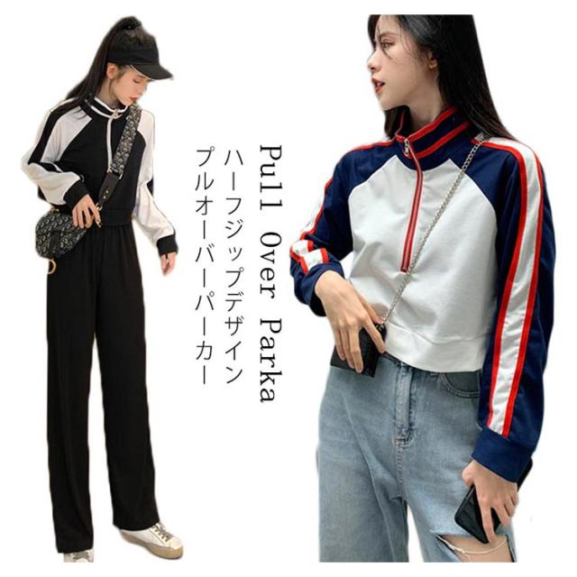 ライン入り パーカー レディース ハーフジップデザイン プルオーバー パーカー ショート丈 長袖 オーバーサイズ プルオーバーパーカ パーカー ジャージ 部屋着 ダンスウェア