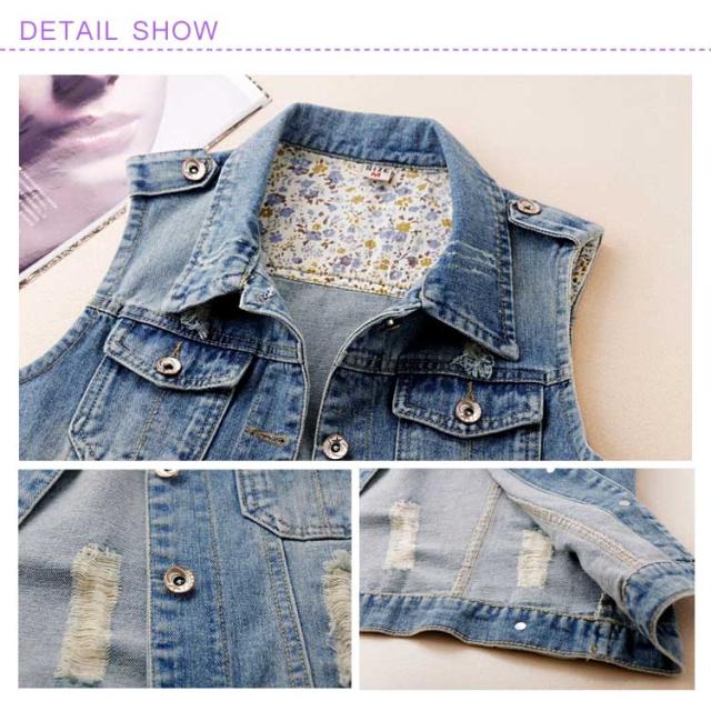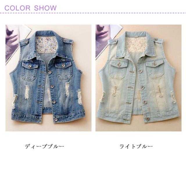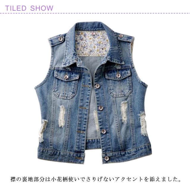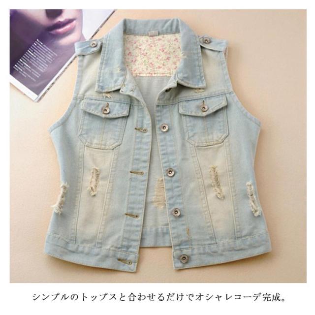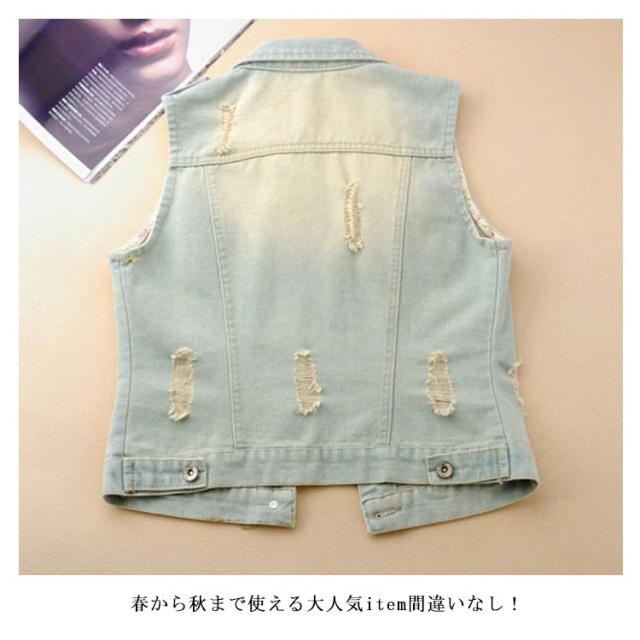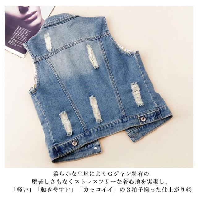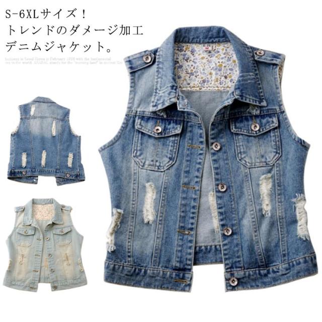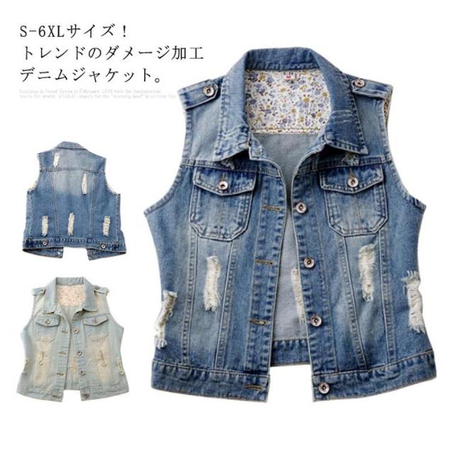 S-6XLサイズ!デニムベスト レディース デニムジャケット 袖なし ノースリーブ デニム アウター ダメージ加工 ショート丈 トップス 春 夏 秋
