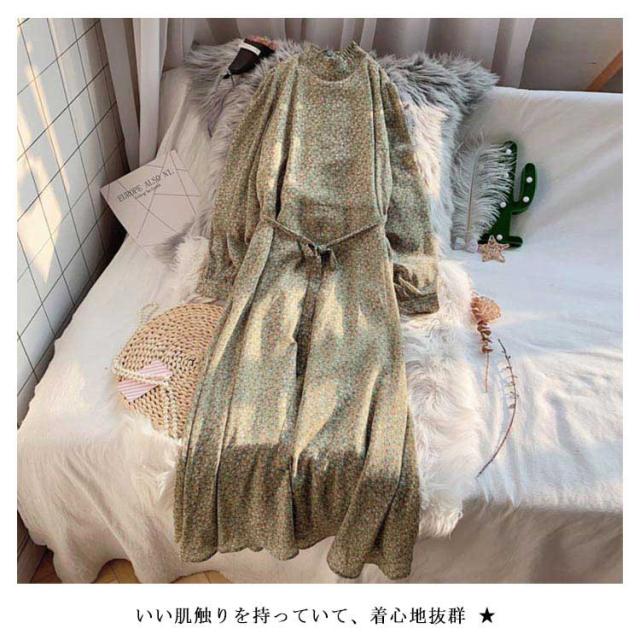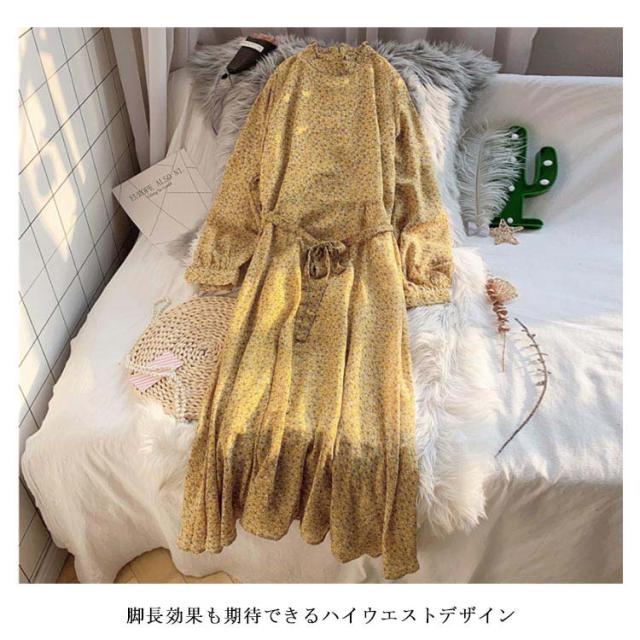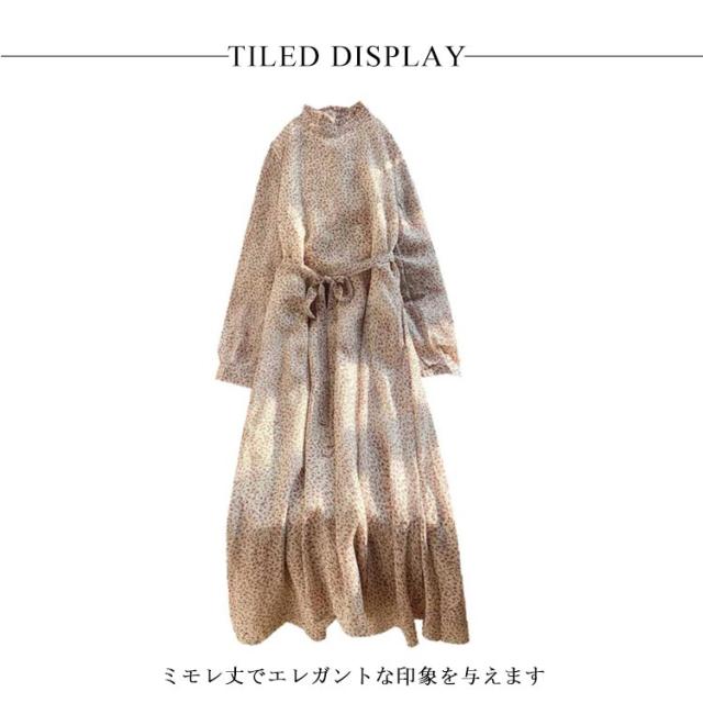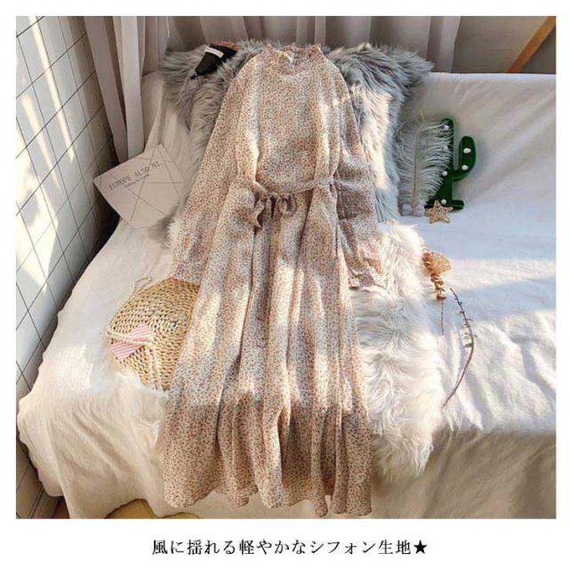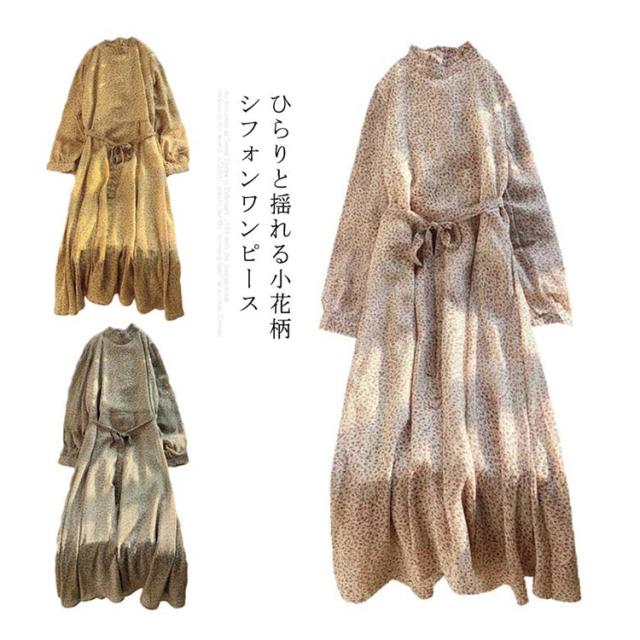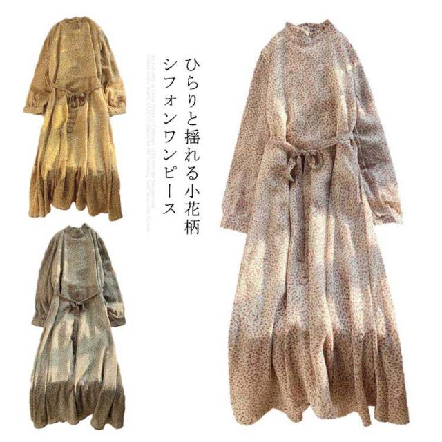 ワンピース レディース シフォン シフォンワンピース ロングワンピース ミモレワンピース 長袖 ボリュームスリーブ 花柄 薄手 ふんわり ゆったり フレア裾 フェミニン 優雅 エレガント お洒落 キレイめ お洒落 大人可愛い 清楚 春夏 春新作