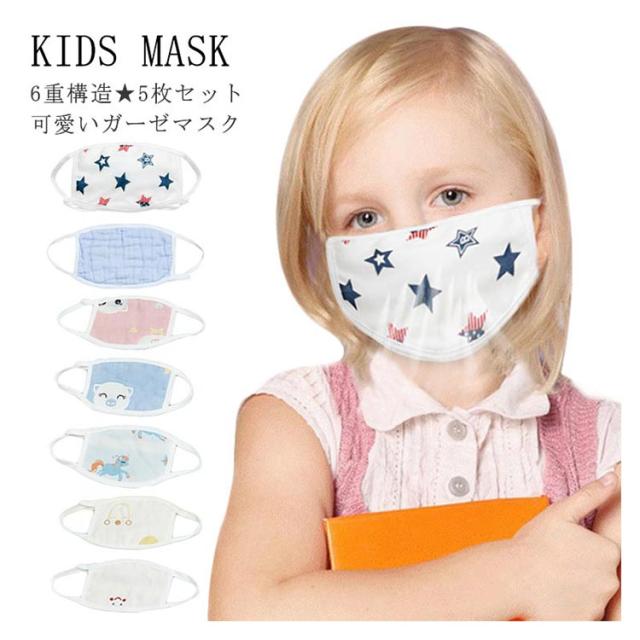 ガーゼマスク 子供用 マスク ガーゼ マスク 5枚組 洗える 花粉対策 対策 子供マスク 花粉対策 キッズマスク マスク 花粉症 予防対策 風邪 給食当番 保育園 幼稚園 小学校