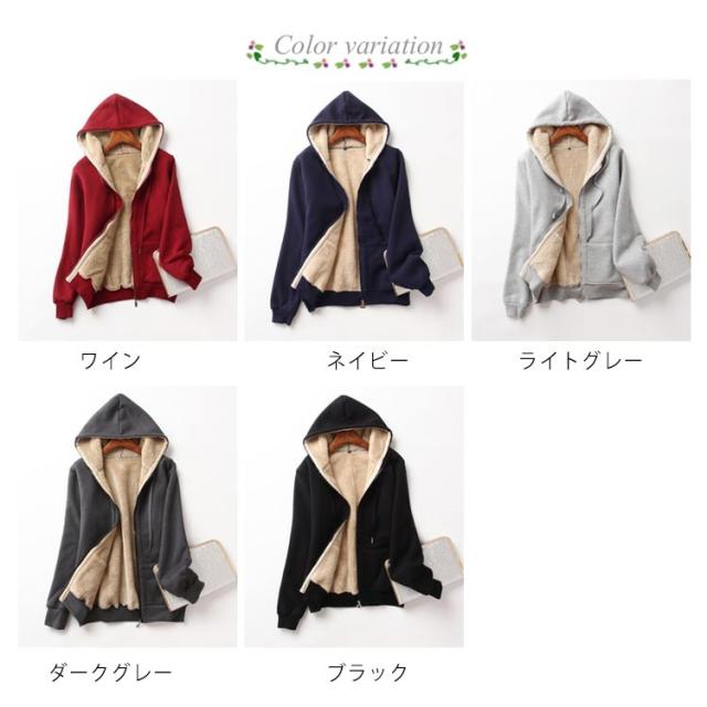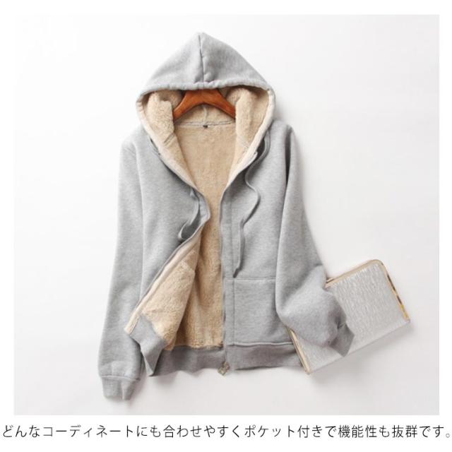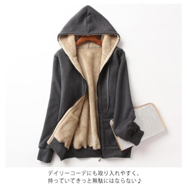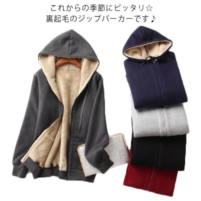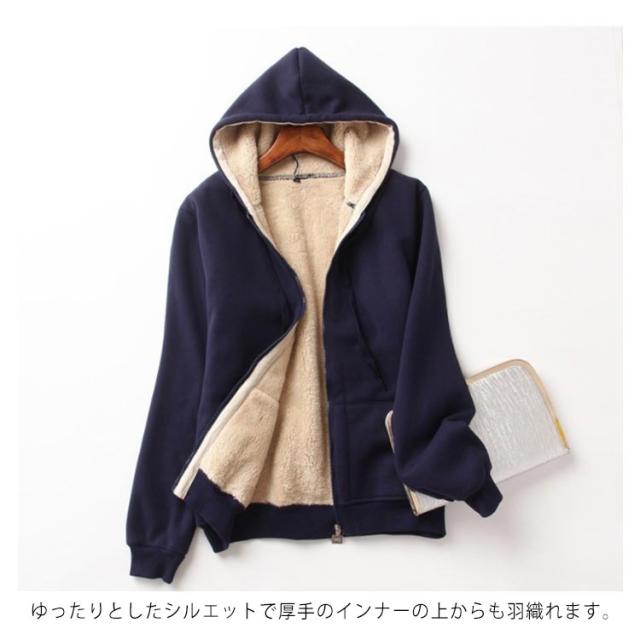 パーカー 裏ボア フード付き ブルゾン スウェット ジップアップ アウター 厚手 体型カバー レディース 長袖 トレーナー 無地 防寒 保温 カジュアル 普段着 大きいサイズ