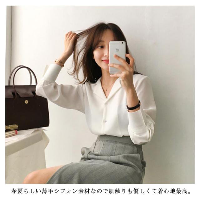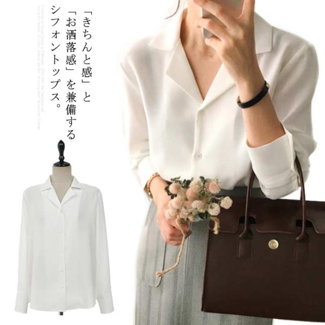 シフォンシャツ レディース シャツ ブラウス トップス 長袖 Vネック ゆったり 通勤 オフィス キレイめ シンプル 春物 お洒落
