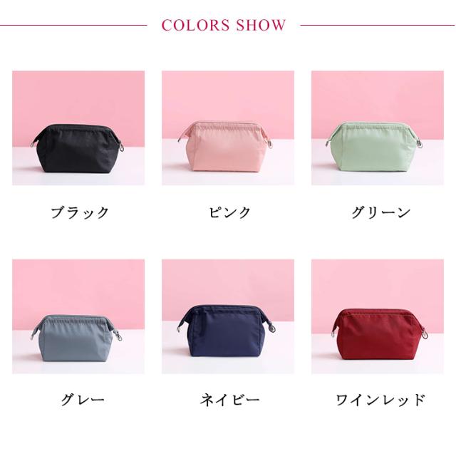 | 6colors!化粧ポーチ お洒落で大容量、内ポケットが施されて中身が散らからずにすっきり収納。 化粧品やメイク道具などを見やすく整理でき、機能性とファッション性併せ持つアイテム。 外側は撥水加工がされているので、化粧室での水しぶきもへっちゃら。 日常使いはもちろん、旅行や出張時も必ず大活躍。 | |