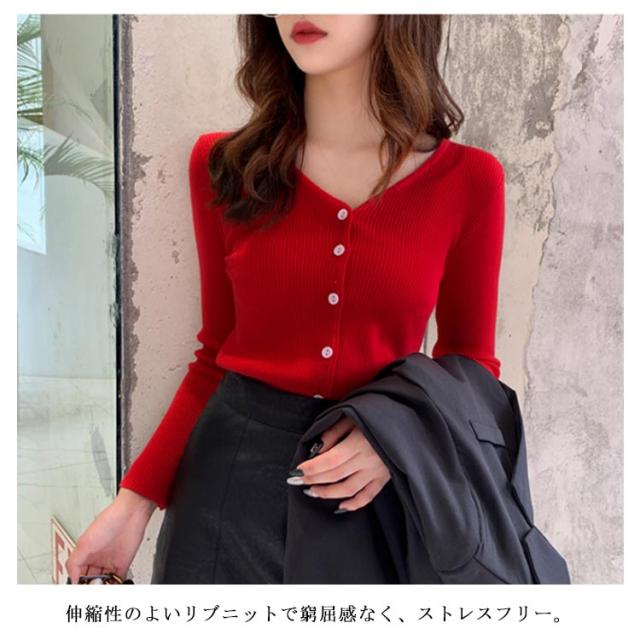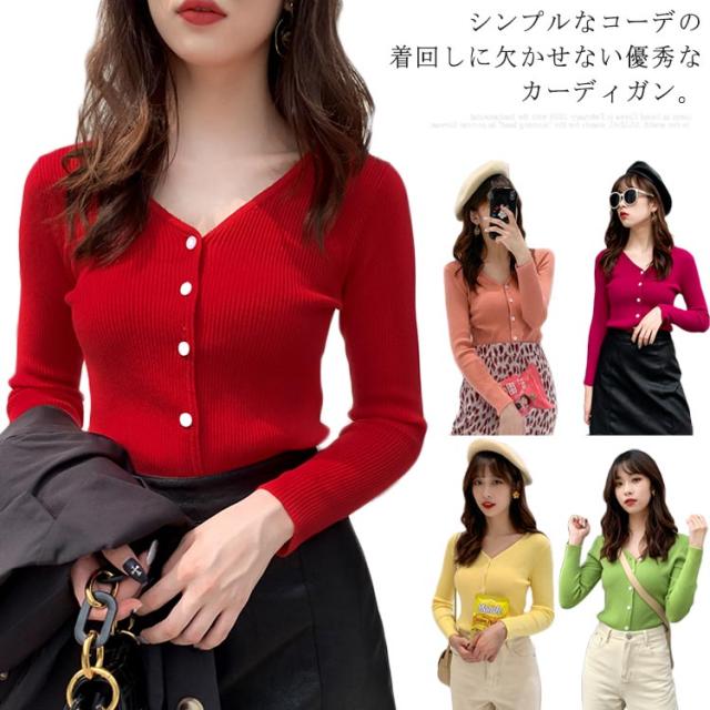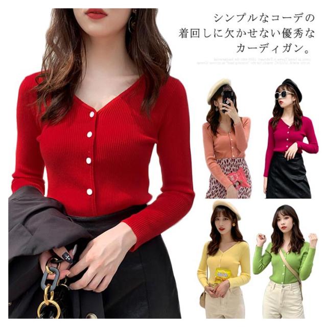 ニットカーディガン ショート丈 長袖 レディース Vネック カーディガン トップス 羽織り アウター ストレッチ 薄手 着痩せ 無地 春物 お洒落