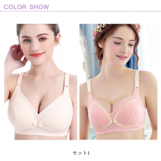 | 産前産後兼用のブラジャー。 胸に垂れないように特別なデザインが秘密。 フロントボタン仕様のワンタッチで取り付けやすく、授乳しやい、とても便利。 通気性のよい、刺激少ない綿素材で心地もよく着用感抜群。 ノンワイヤカップで苦しくなく楽チンなのにしっかりと支えてくれます。 背中のお肉もしっかりと集めて、肩紐も幅広く、ストレスなくが痛くならない。 2点セットなのにお手頃価格でとっても買い得。 | |
