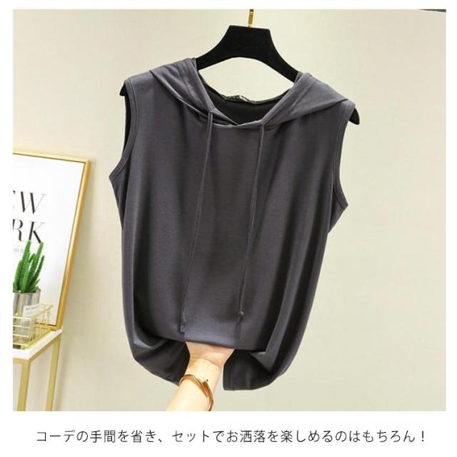 レディース ベスト Tシャツ フード付き タンクトップ メンズ 無地 夏 袖なし ノースリーブ タンクトップ パーカー トップス トレーニング スポーツ ベスト トレーニング ゆったり 薄手 大きいサイズ レイヤード 袖なしパーカー おしゃれ 送料無料