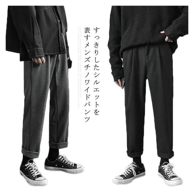 チノパンツ メンズ ワイドパンツ ロングパンツ ストレートパンツ カジュアルパンツ ポケット付き 調節できる 無地パンツ お洒落 シンプル 着まわせる ボトムス 春秋 春新作
