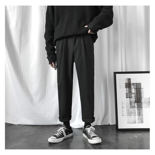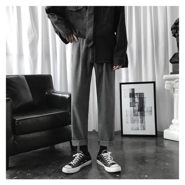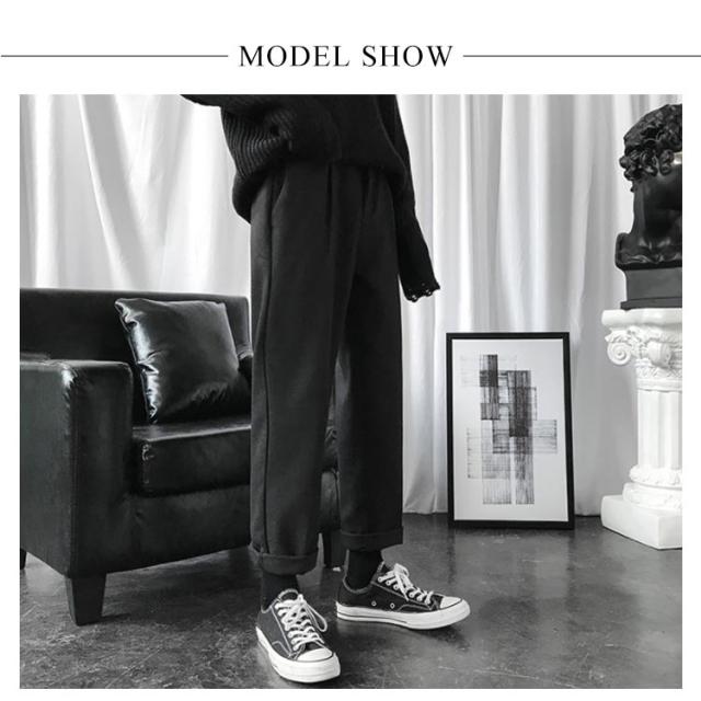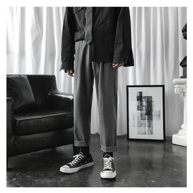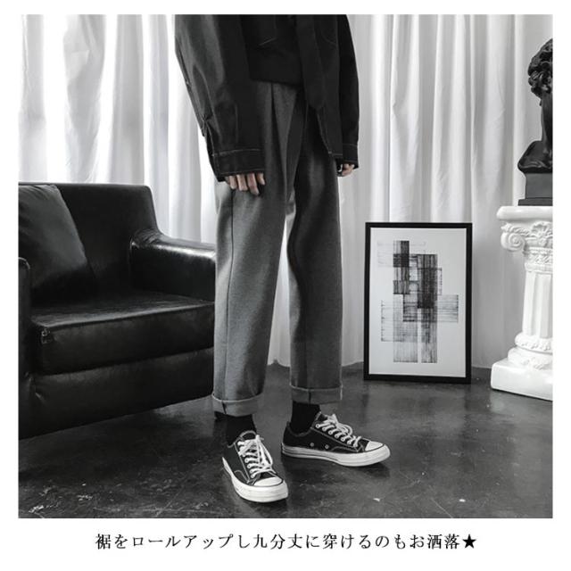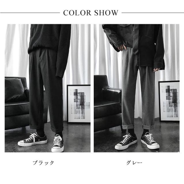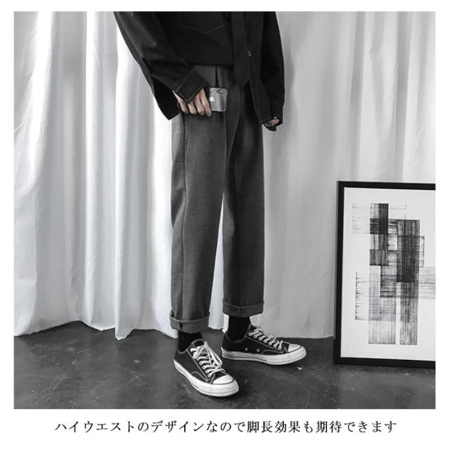 | すっきりしたシルエットを表すメンズチノワイドパンツ(?子) 両サイドにポケットが付いてる仕様です(??口袋?用) シンプルながらも着回し力抜群の優秀なアイテム(??) ハイウエストのデザインなので脚長効果も期待できます(高腰修身) | |
